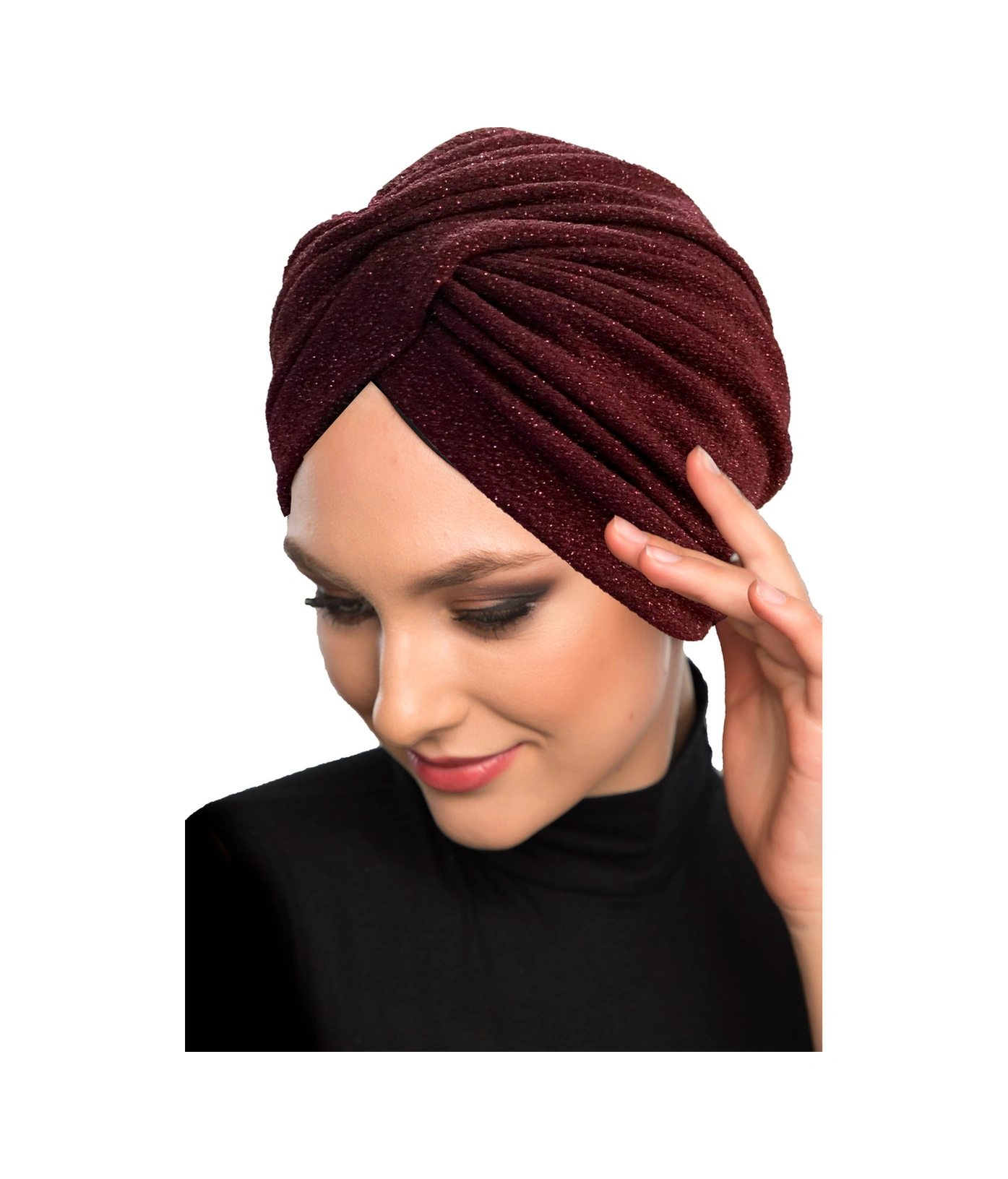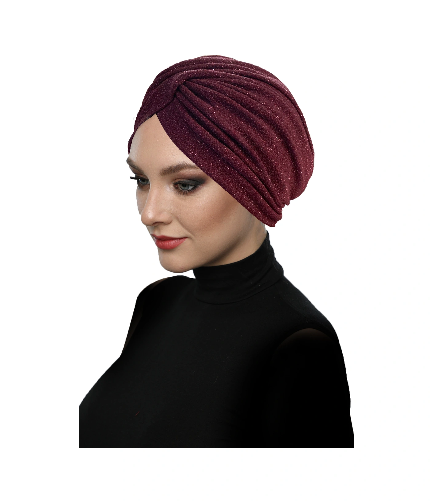 Çapraz Fukuro Simli Astarlı Bordo Hazır Türban Tesettür Abiye Bone Bordo