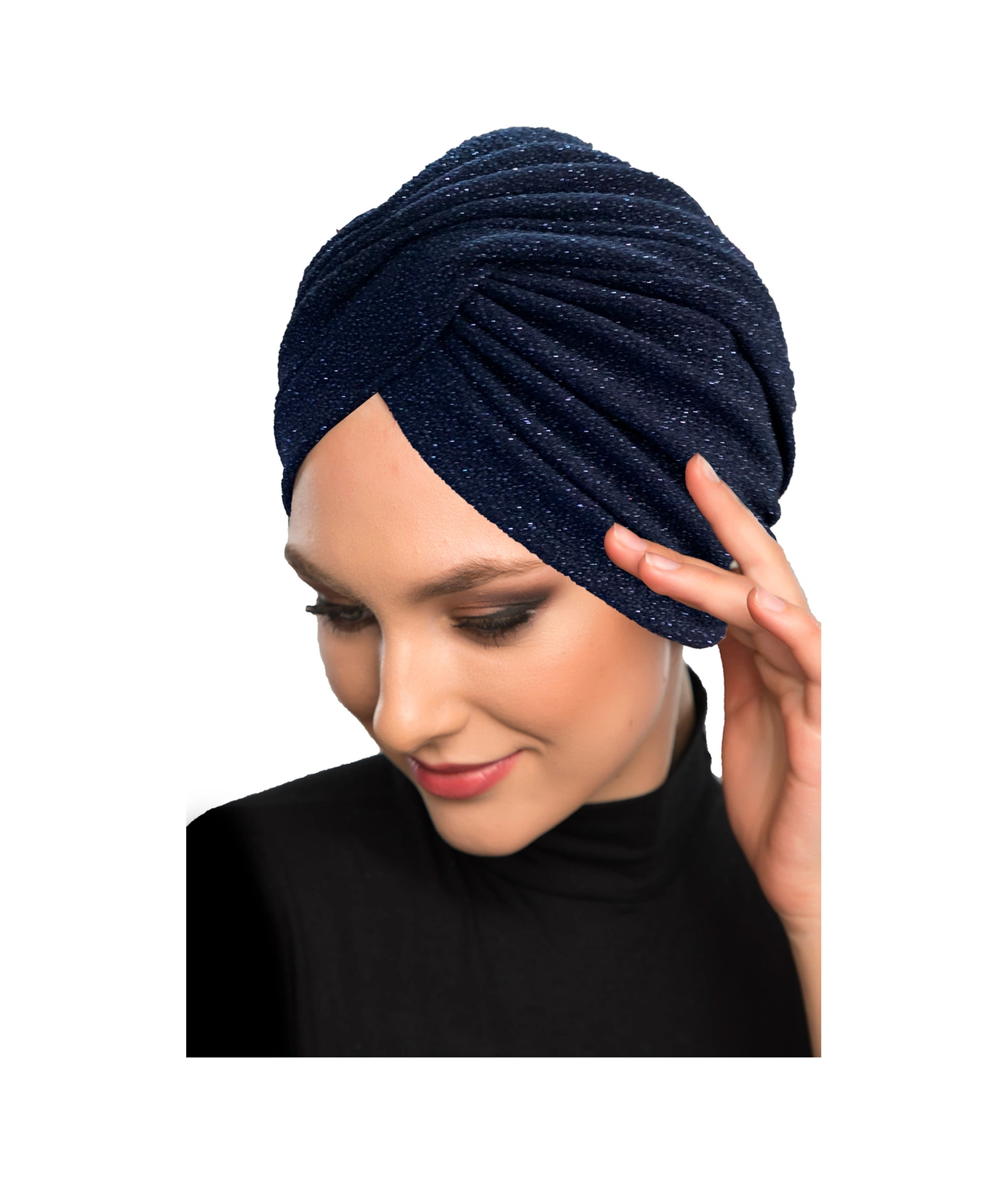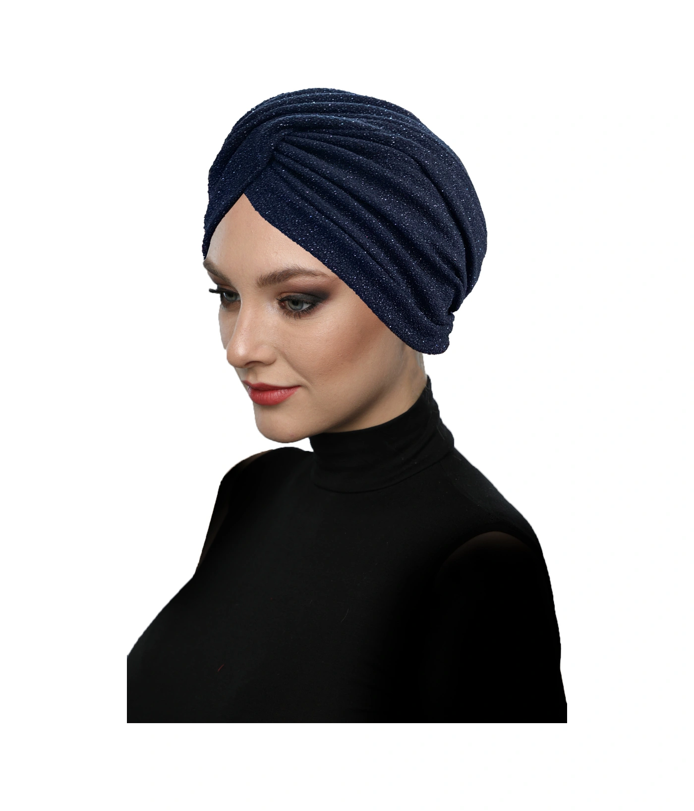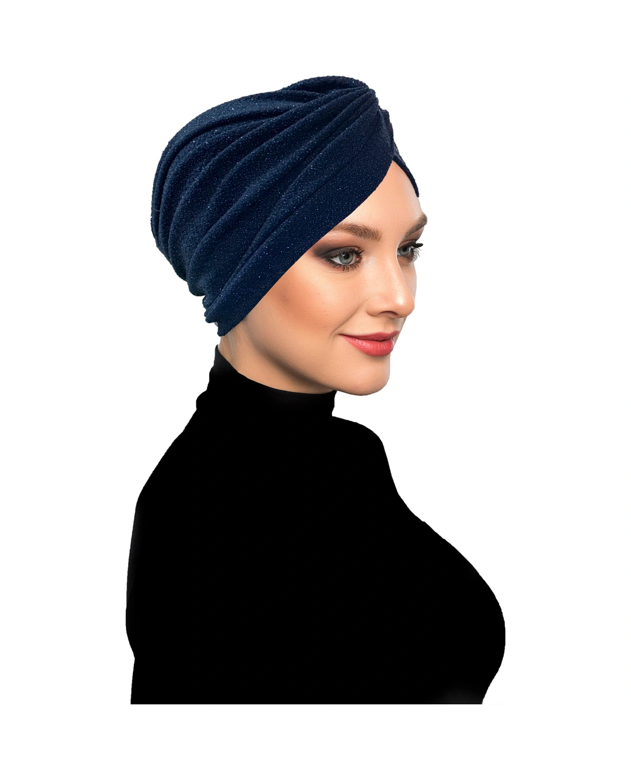 Çapraz Fukuro Simli Astarlı Lacivert Hazır Türban Tesettür Abiye Bone Lacivert