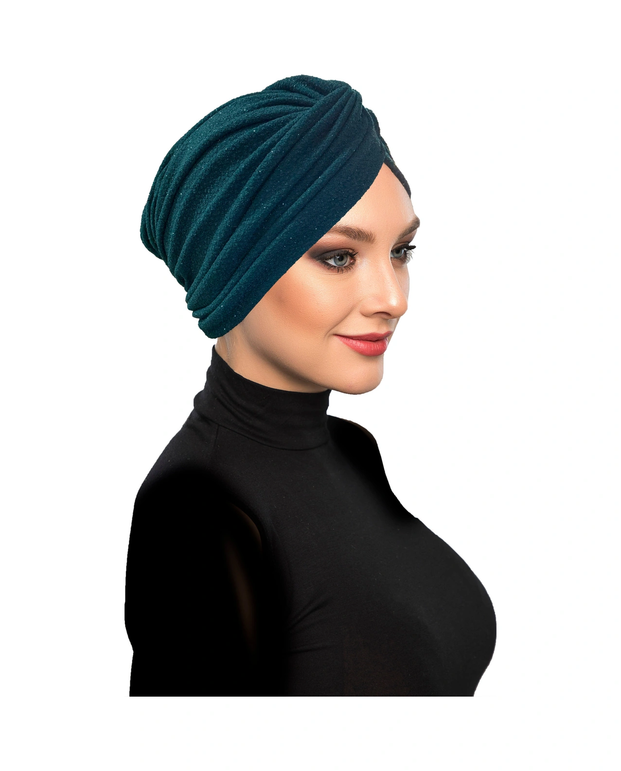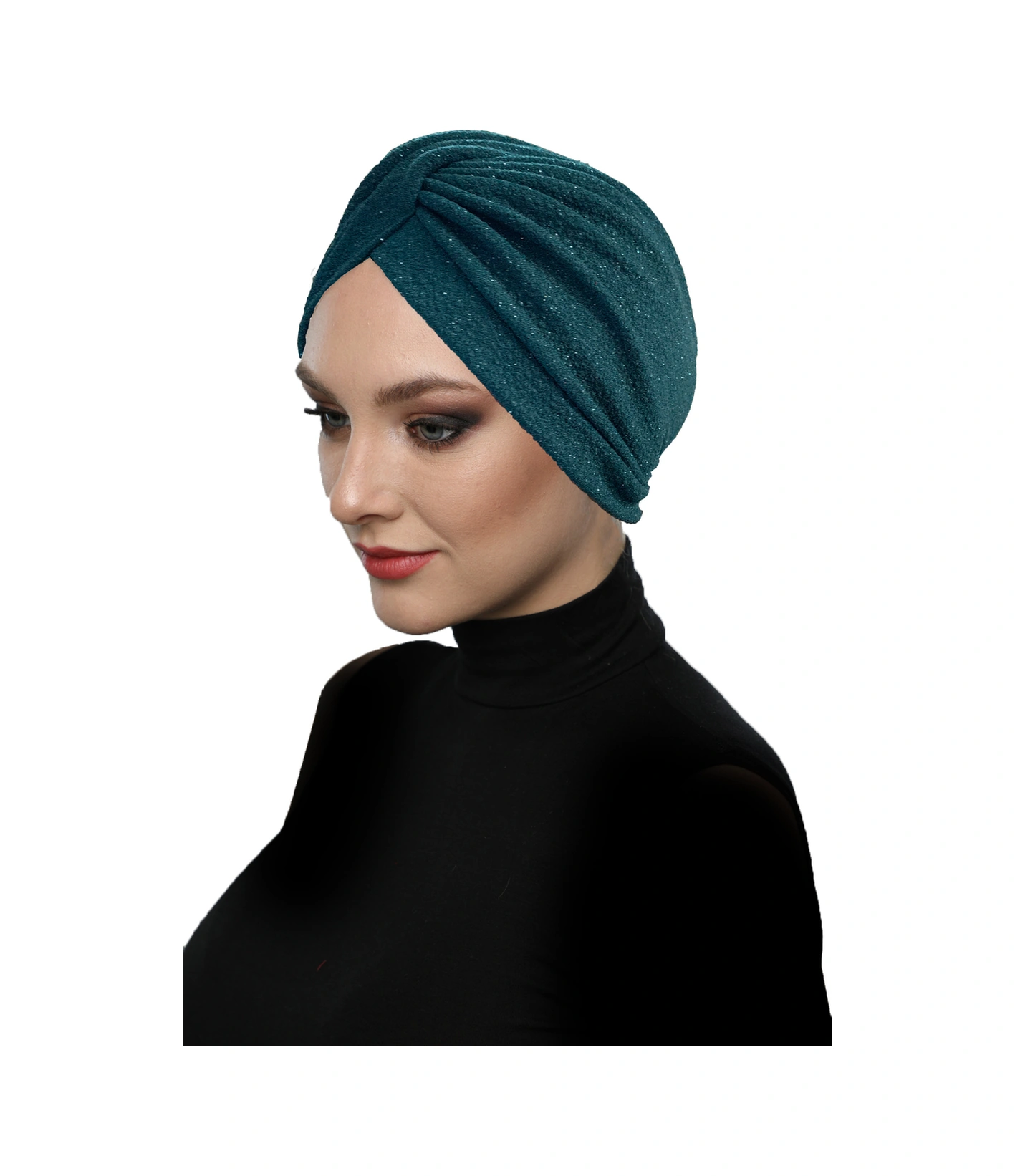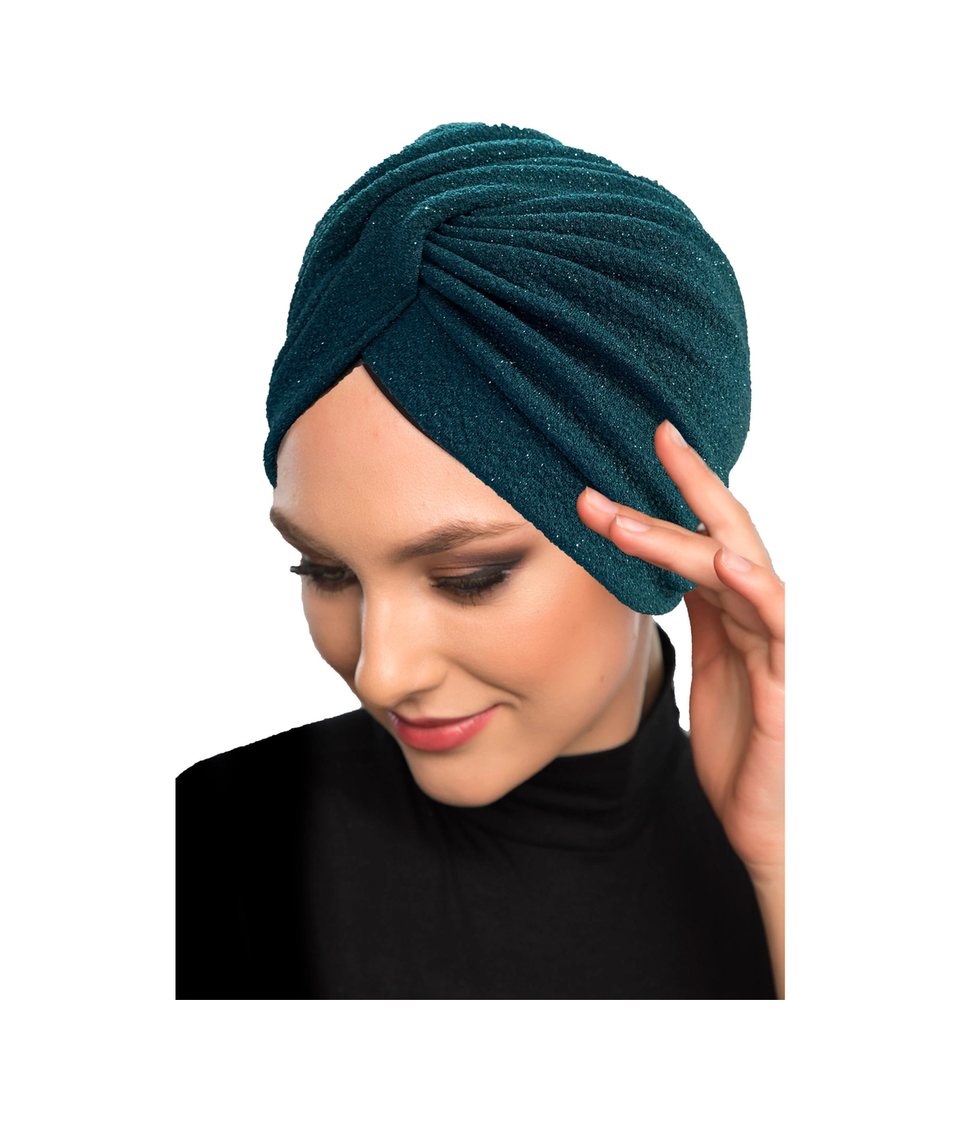 Çapraz Fukuro Simli Astarlı Yeşil Hazır Türban Tesettür Abiye Bone Yeşil