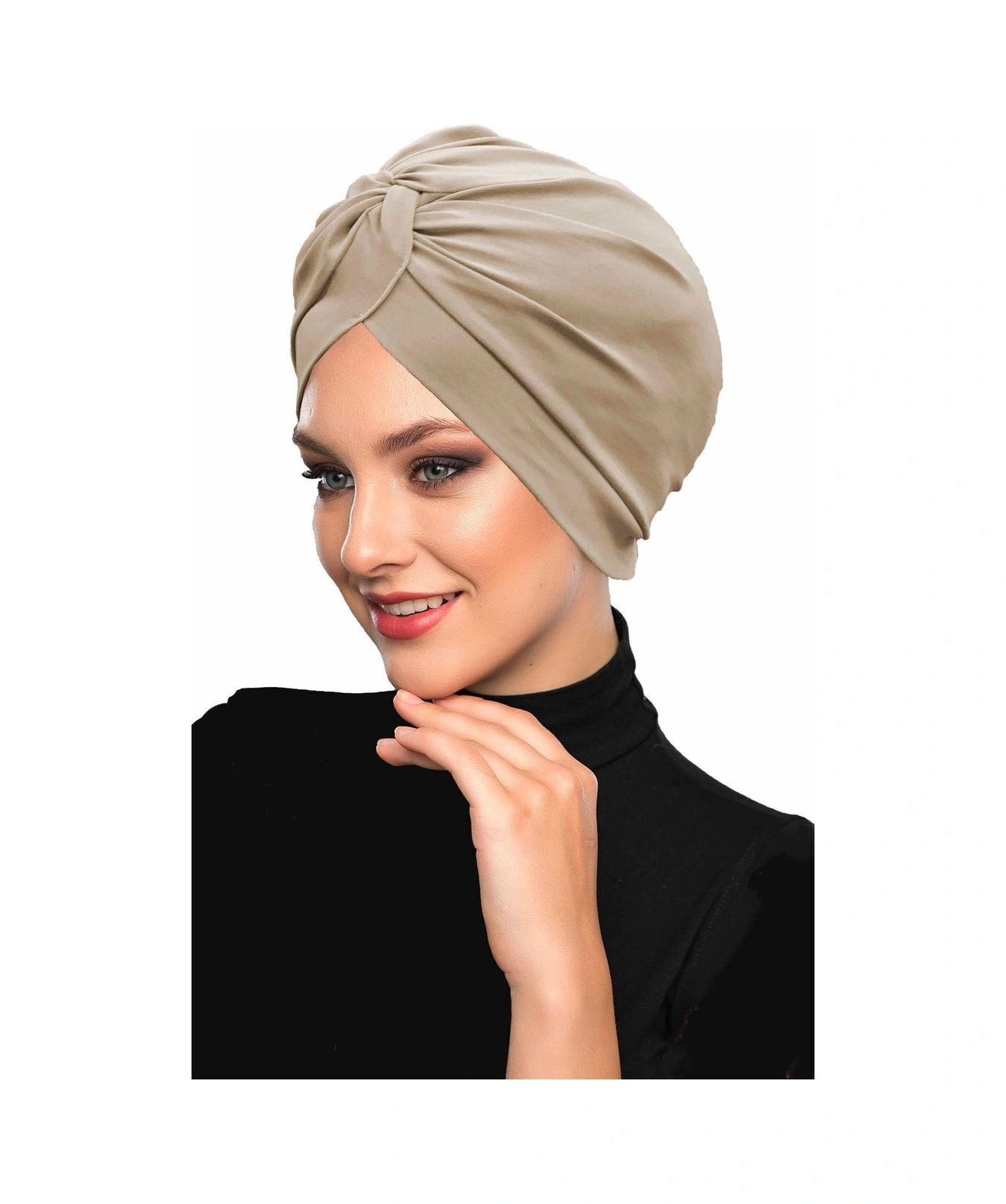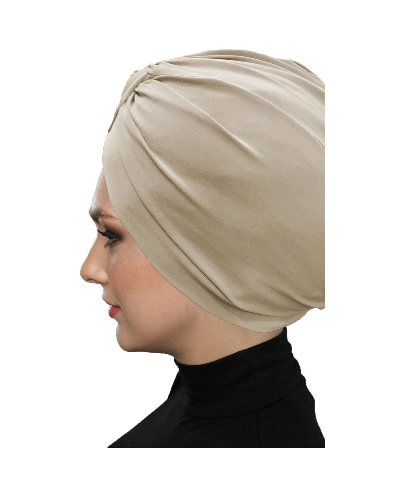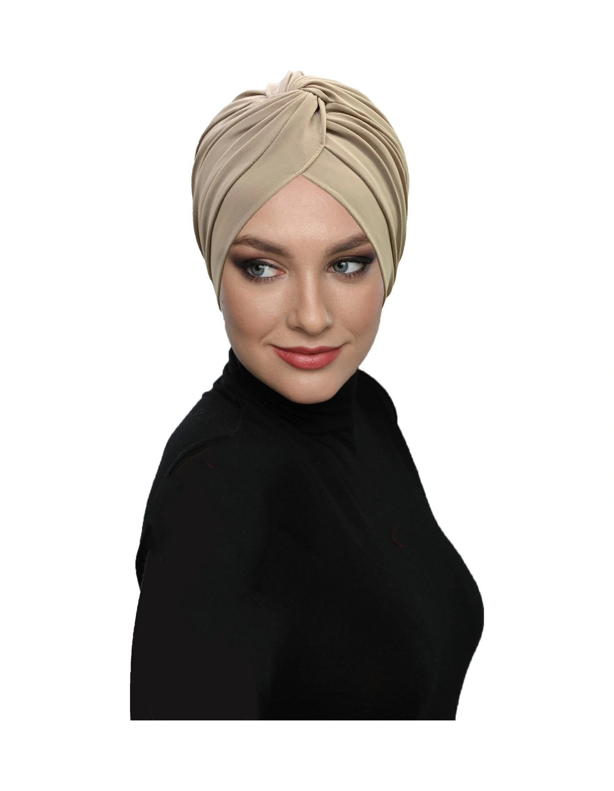 Çapraz Kancalı Bej Hazır Türban Tesettür Dış Ve Havuz Bonesi Bej