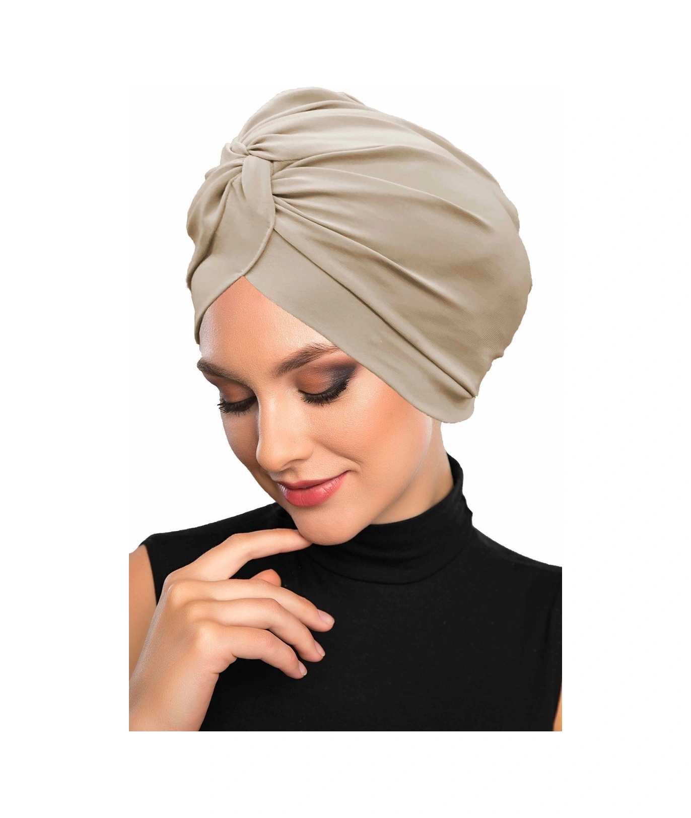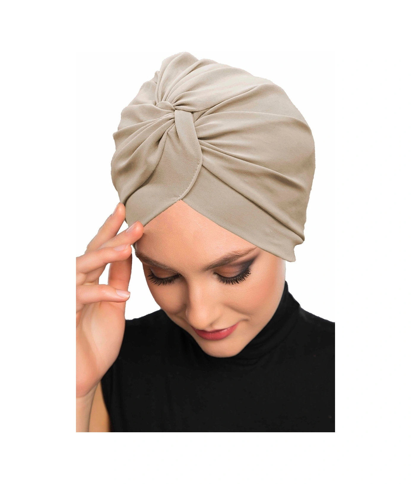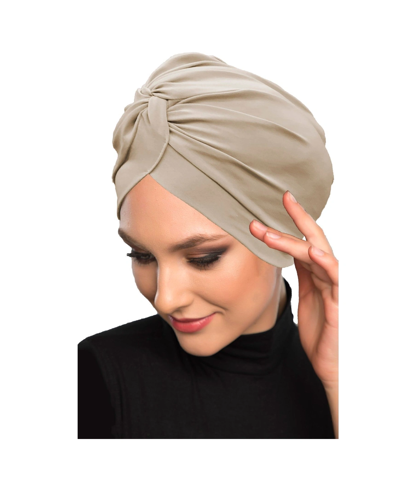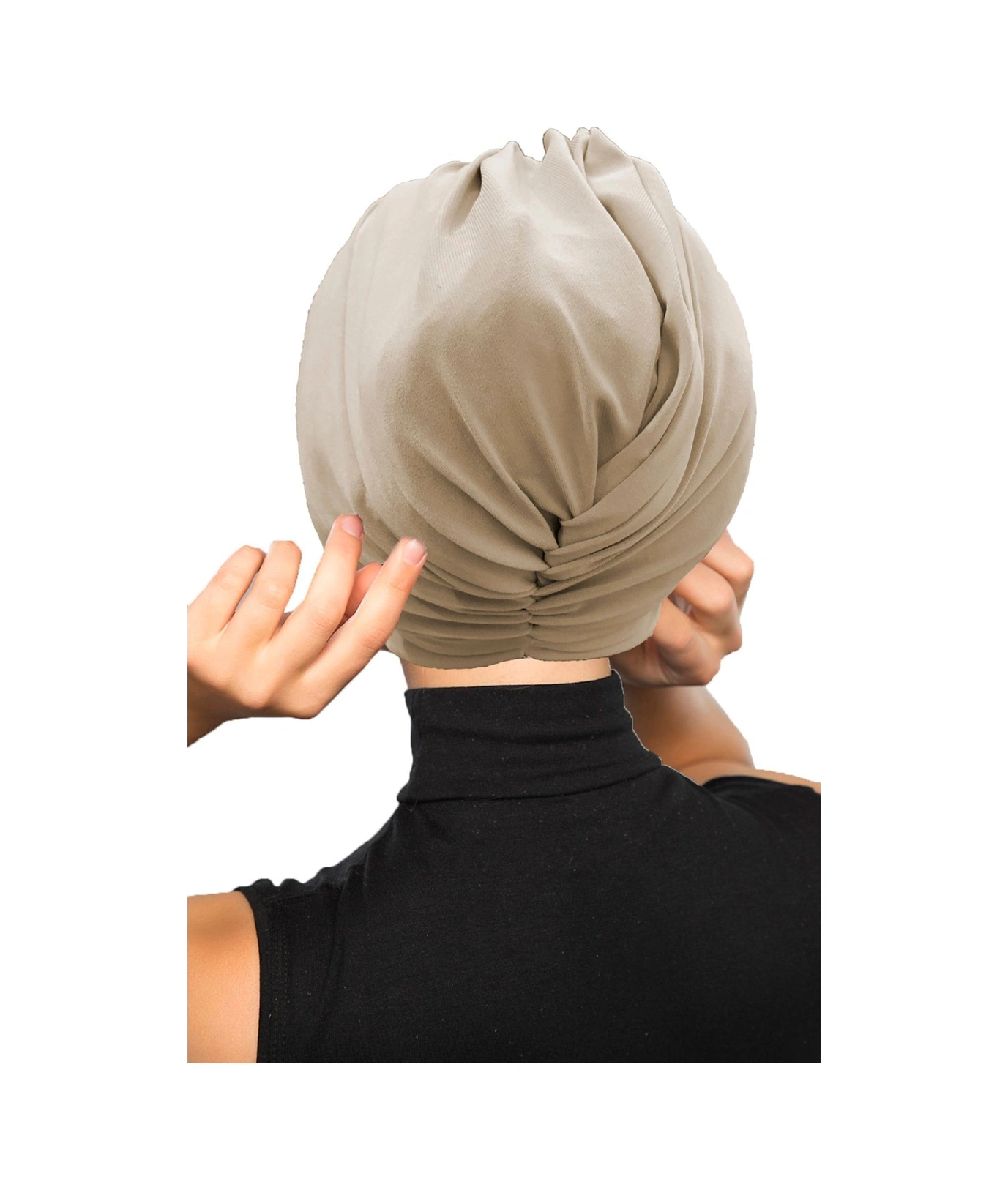 Çapraz Kancalı Bej Hazır Türban Tesettür Dış Ve Havuz Bonesi Bej