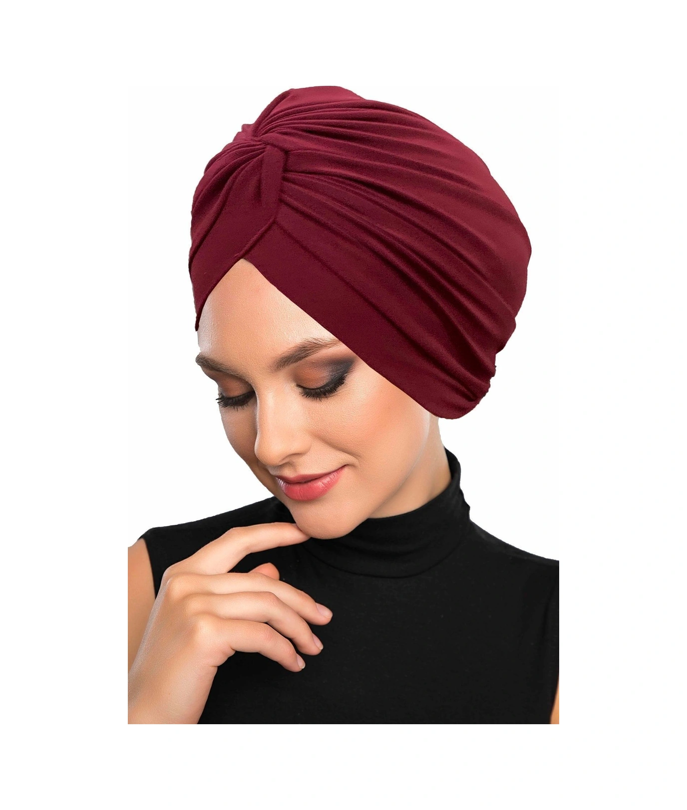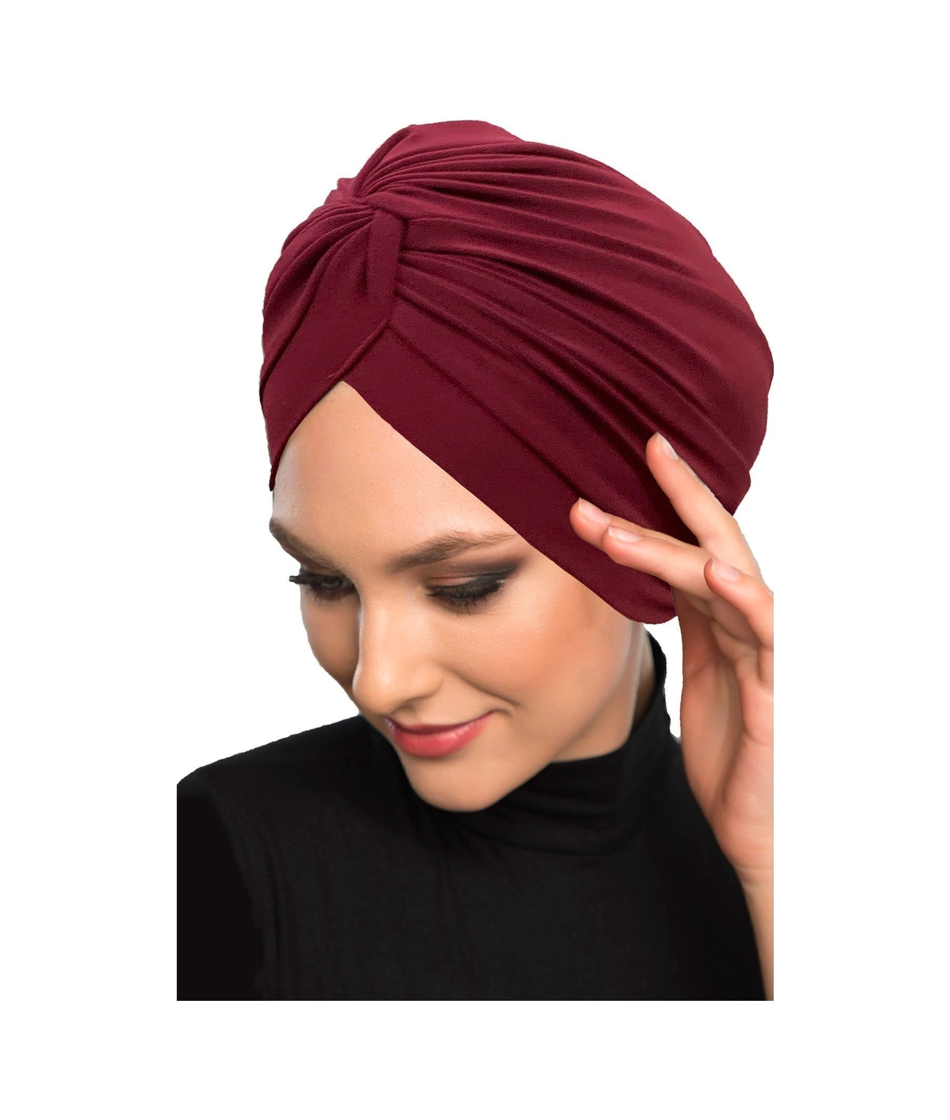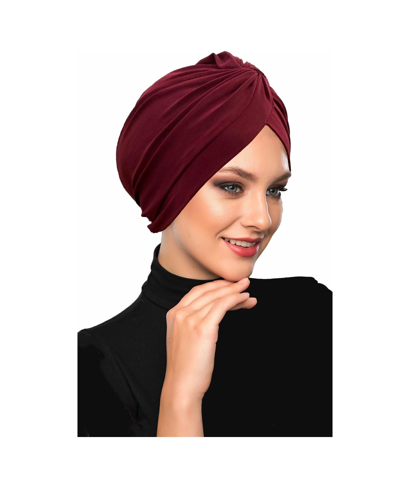 Çapraz Kancalı Bordo Hazır Türban Tesettür Dış Ve Havuz Bonesi Bordo
