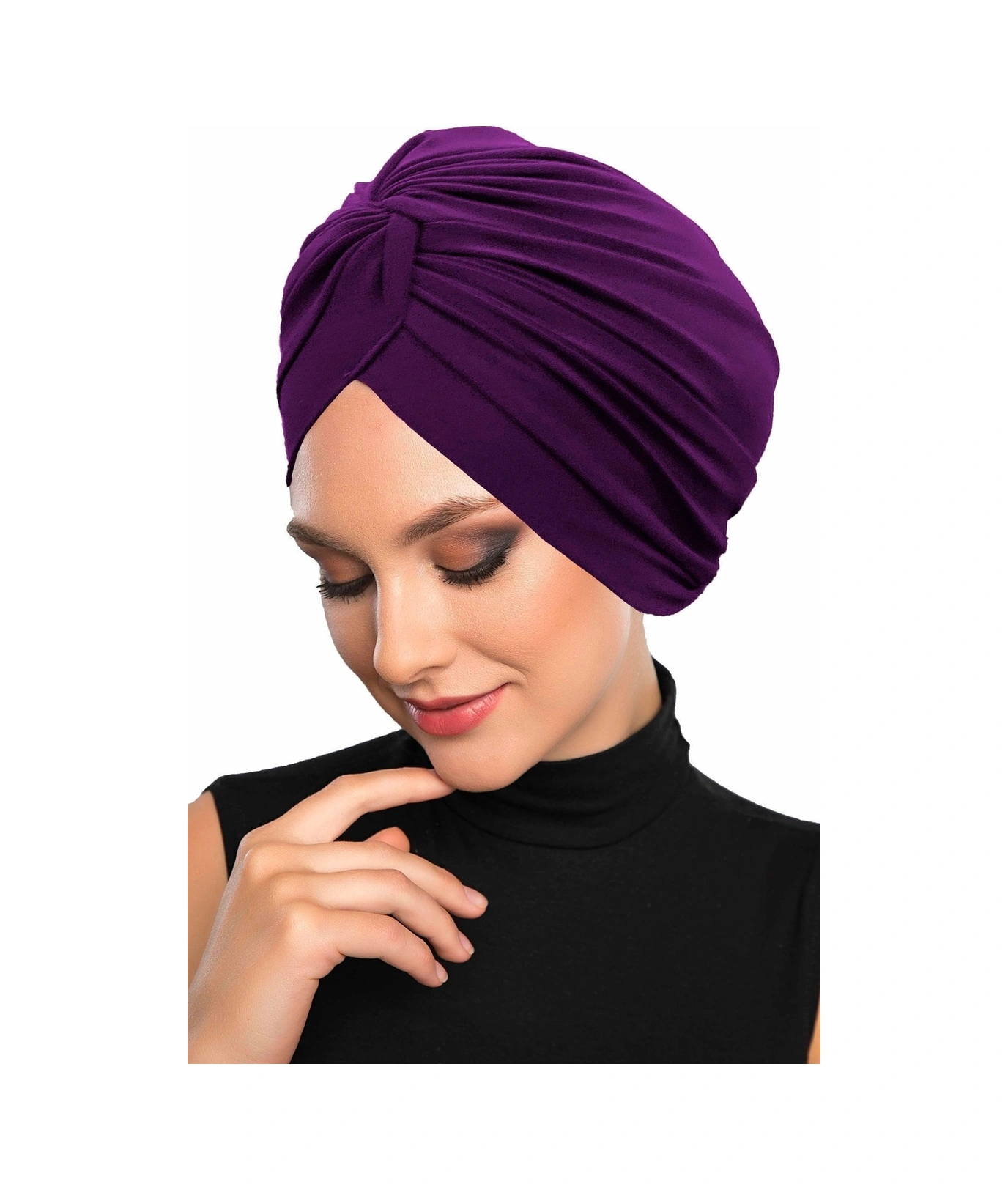 Çapraz Kancalı Mor Hazır Türban Tesettür Dış Ve Havuz Bonesi Mor
