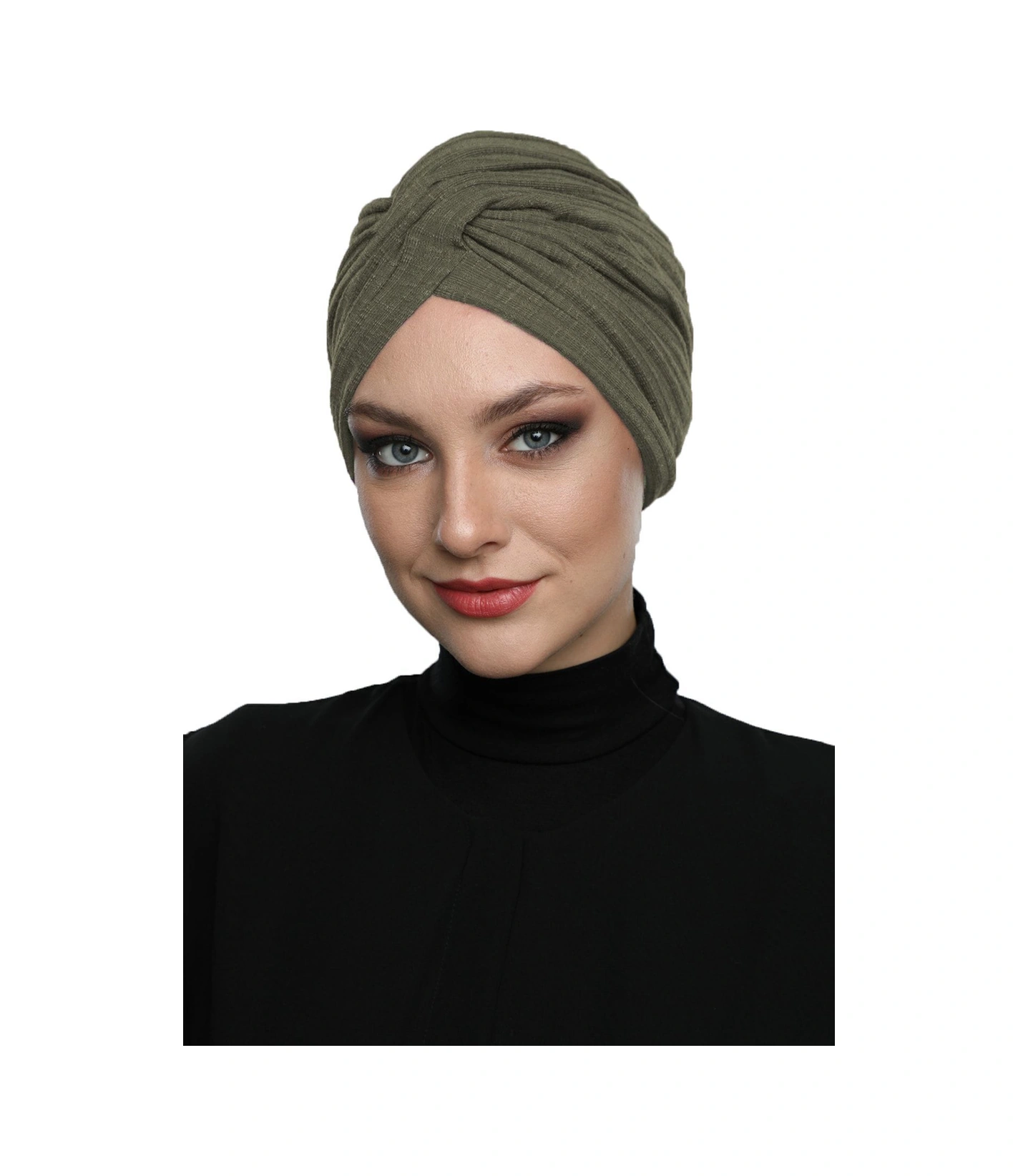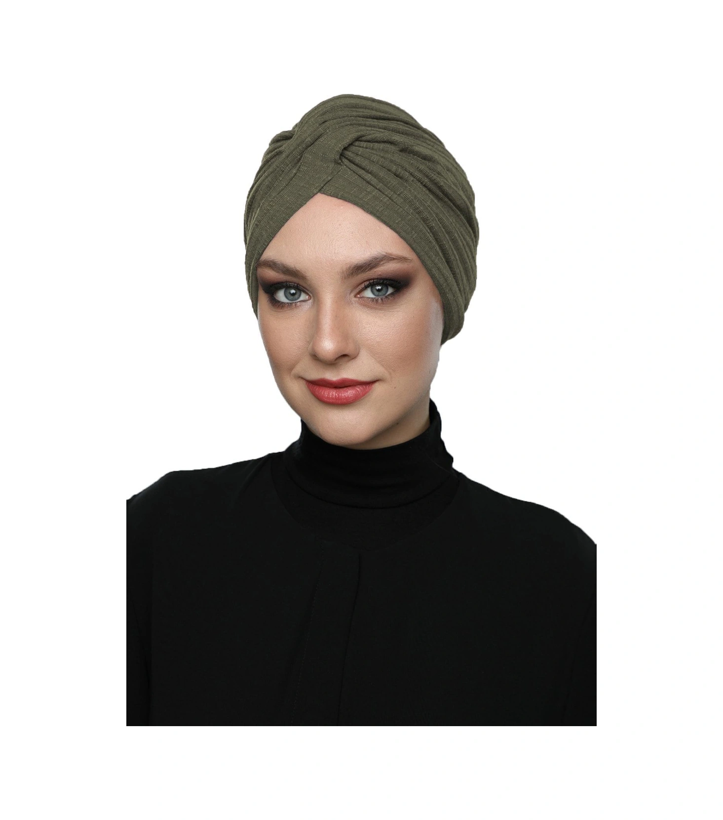 Çapraz Penye Astarlı Asker Yeşili Hazır Türban Tesettür Havuz Bonesi Asker Yeşili