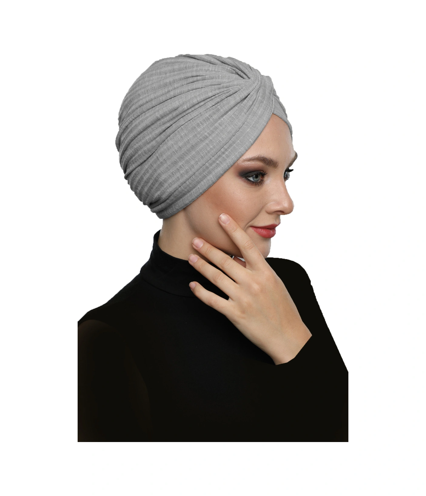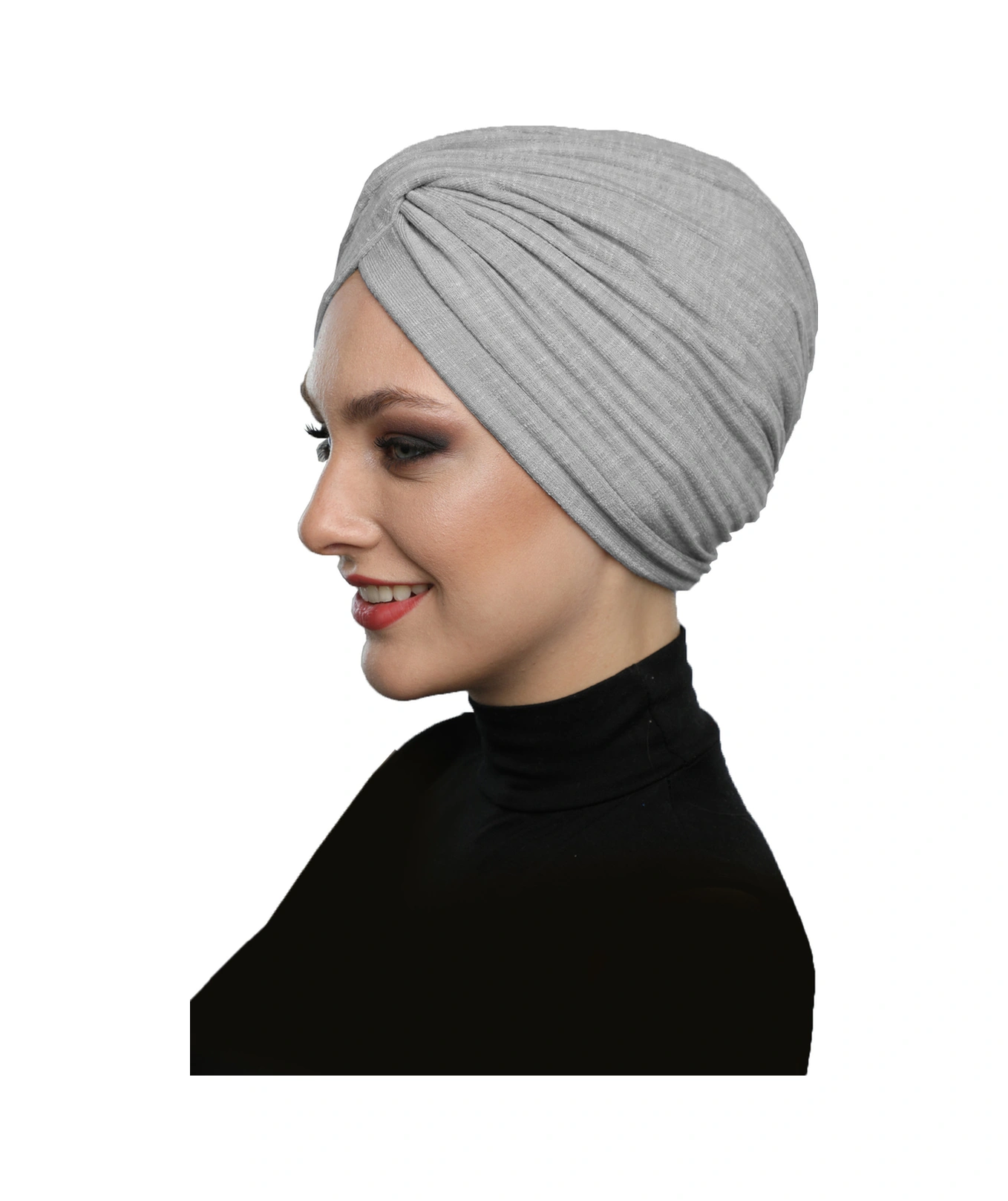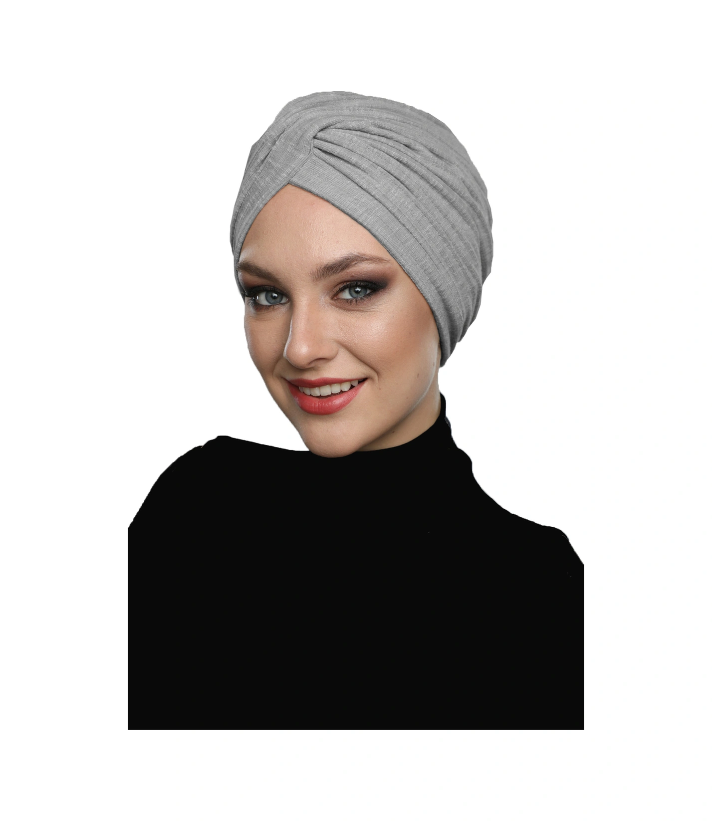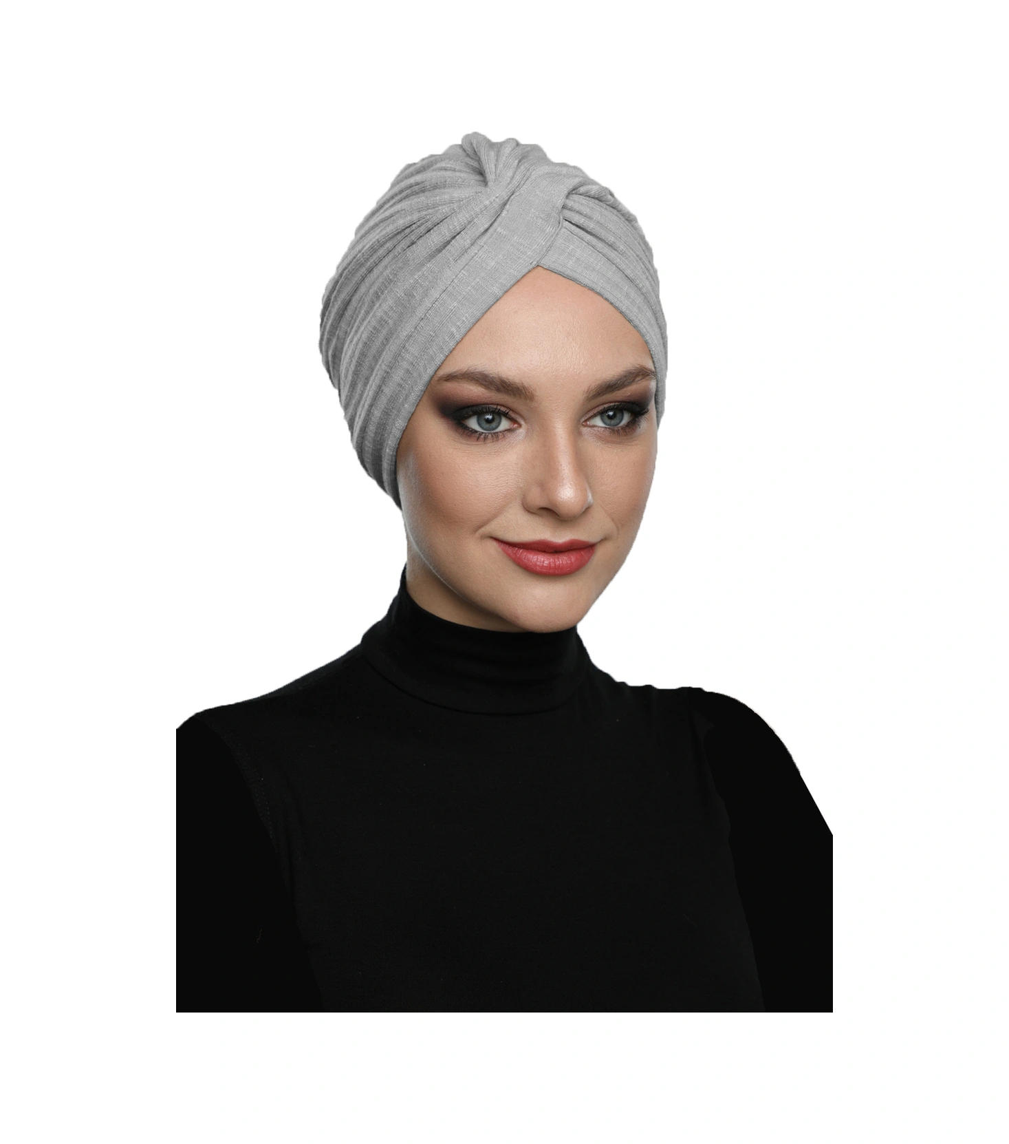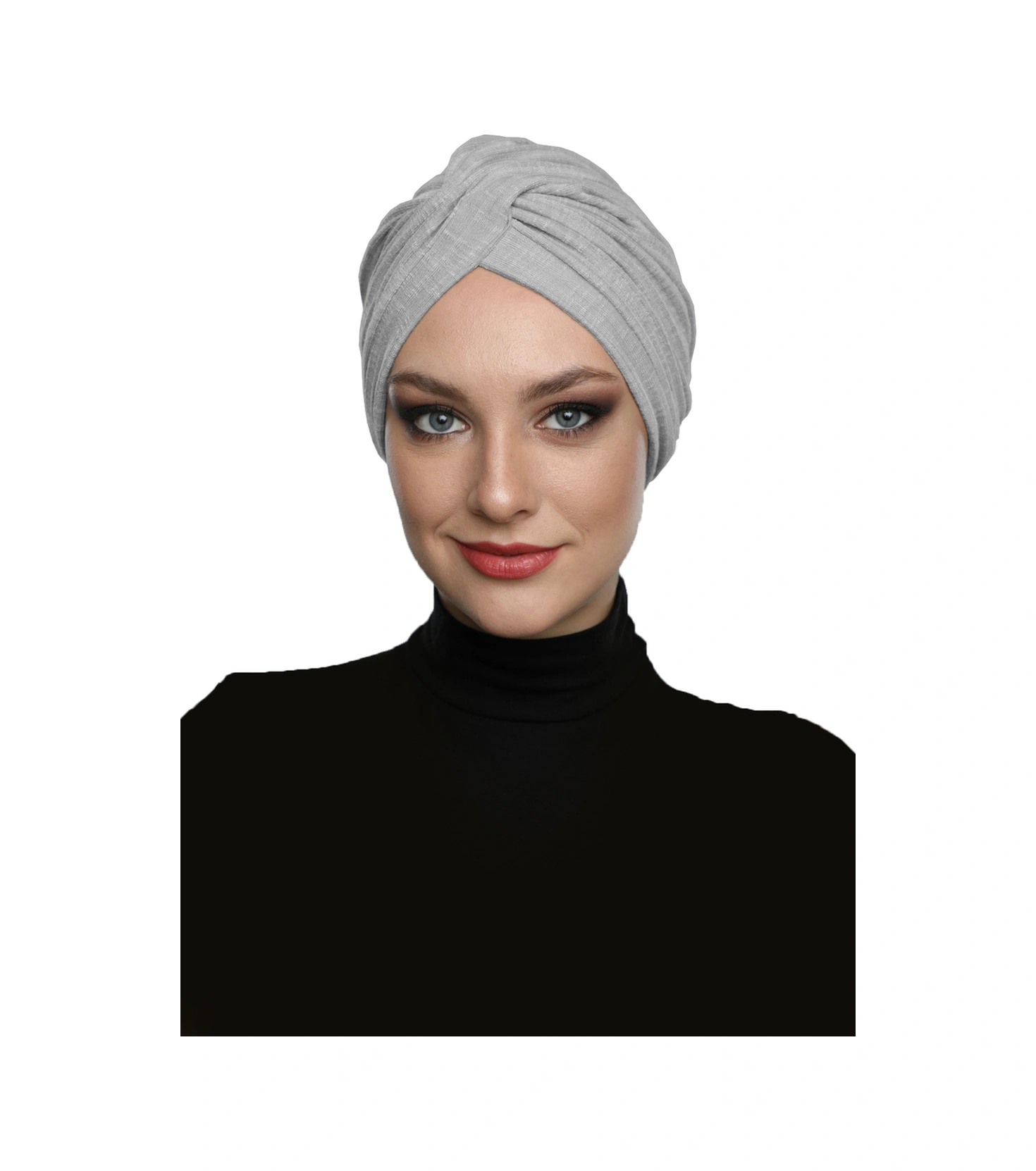 Çapraz Penye Astarlı Bulut Grisi Hazır Türban Bonesi Gri