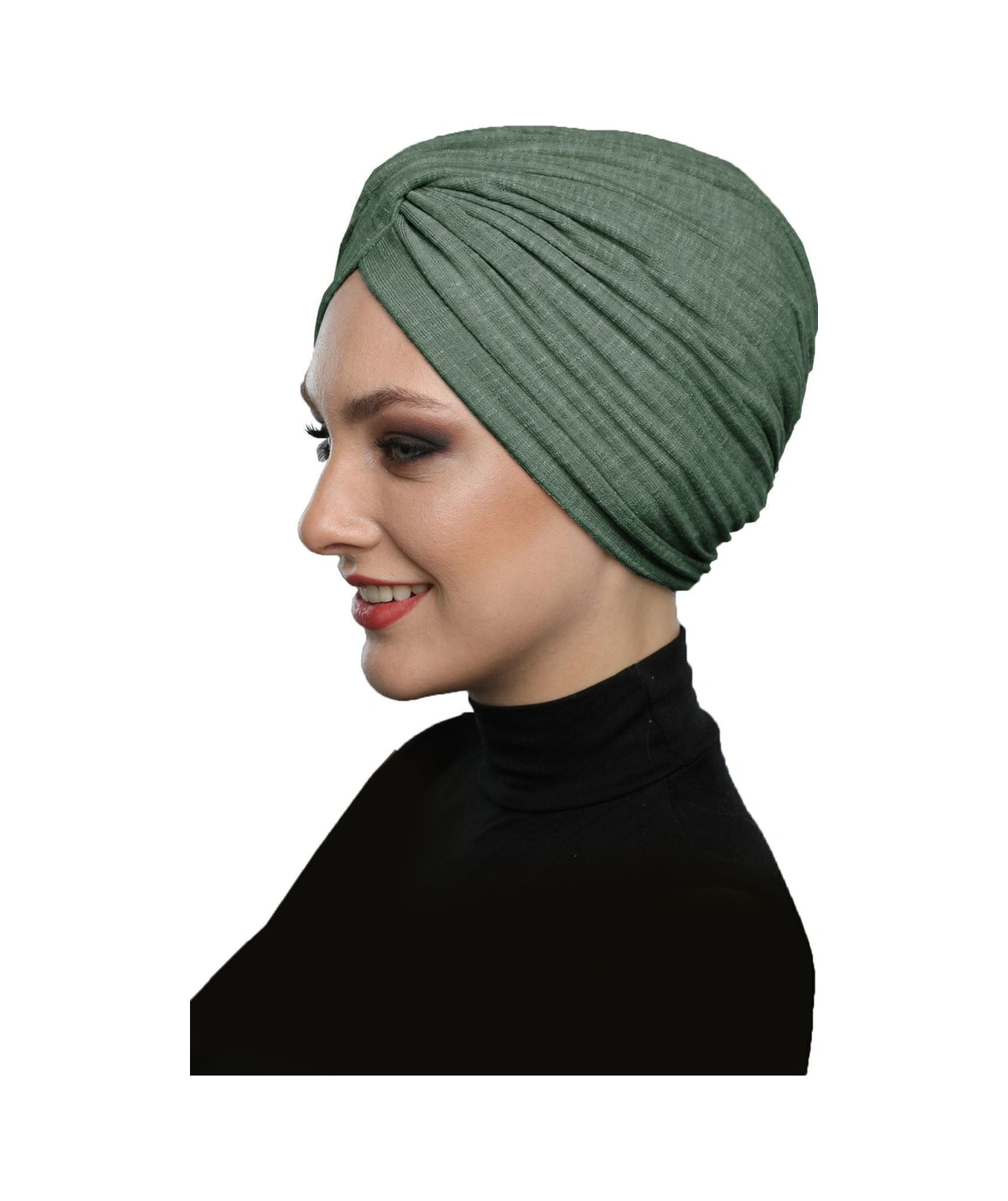 Çapraz Penye Astarlı Çam Yeşili Hazır Türban Tesettür Havuz Bonesi Çam Yeşili