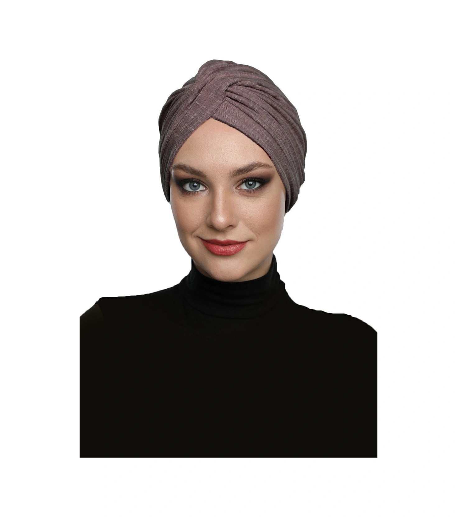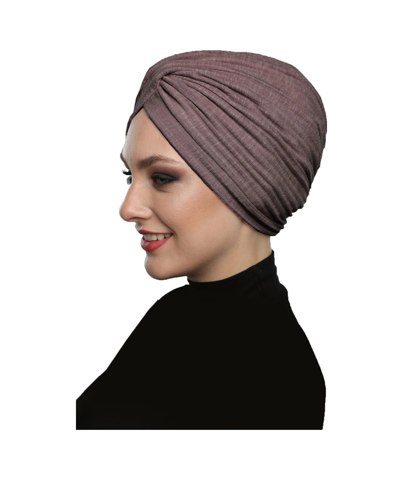 Çapraz Penye Astarlı Ekinezya Rengi Hazır Türban Tesettür Havuz Bonesi Ekinezya