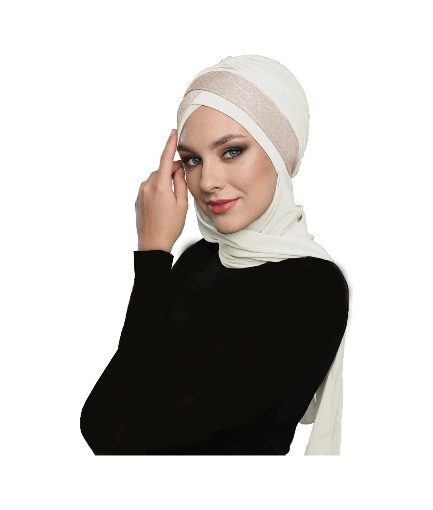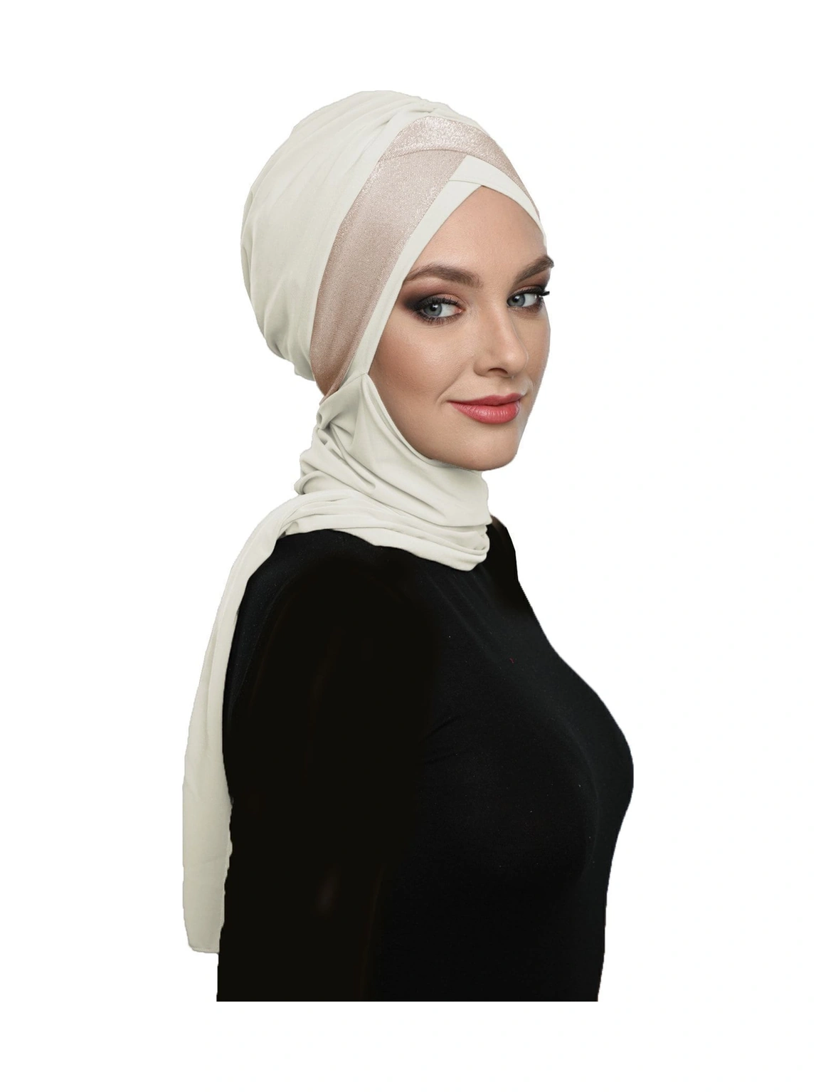 Çapraz Pike Atkılı Astarlı Krem-bej Hazır Türban Tesettür Bone Krem