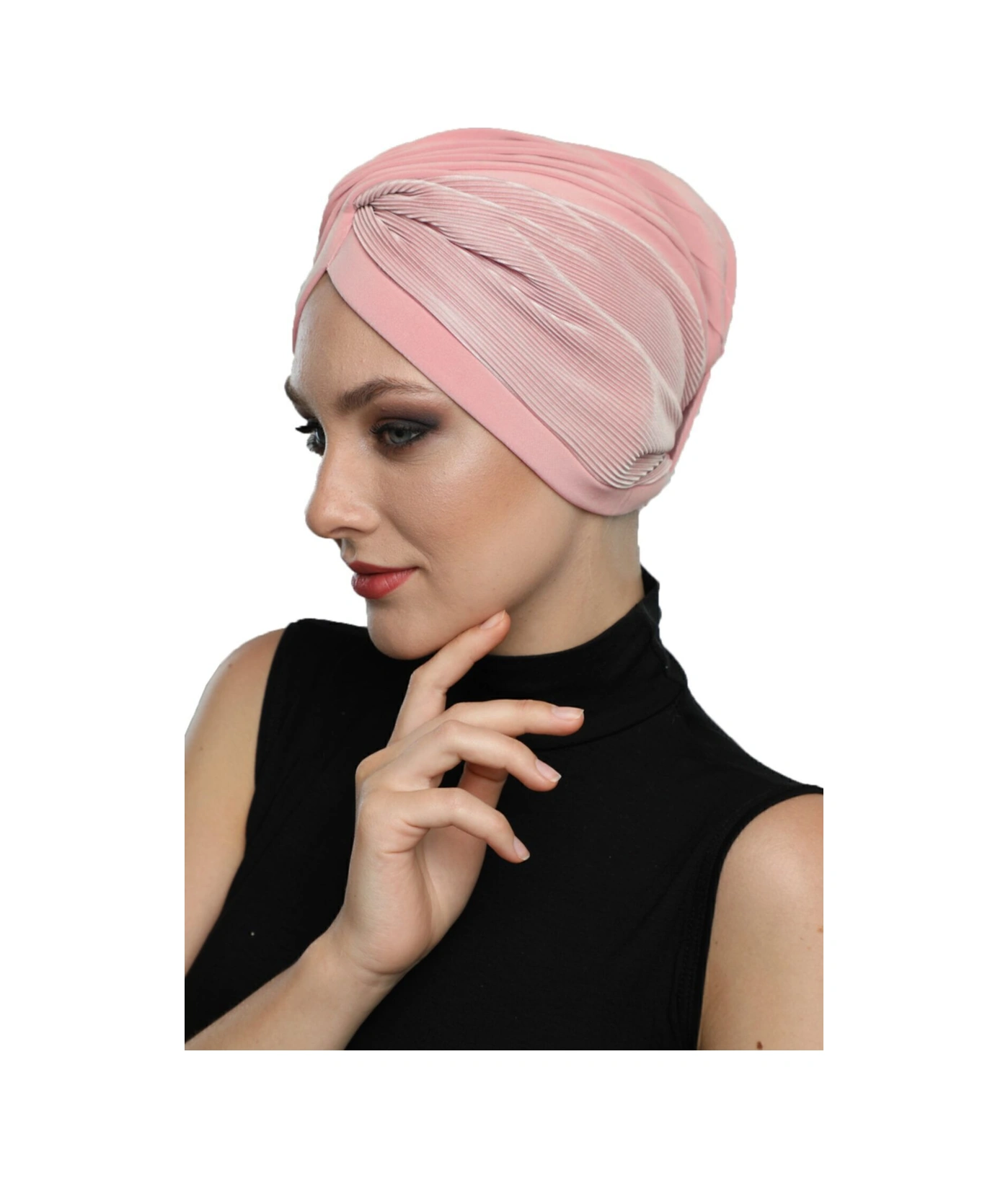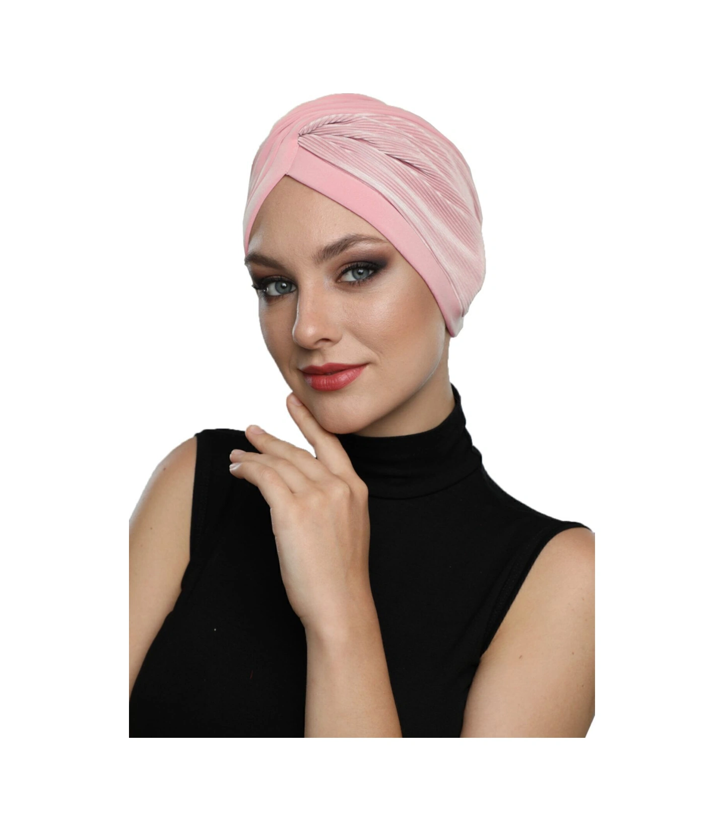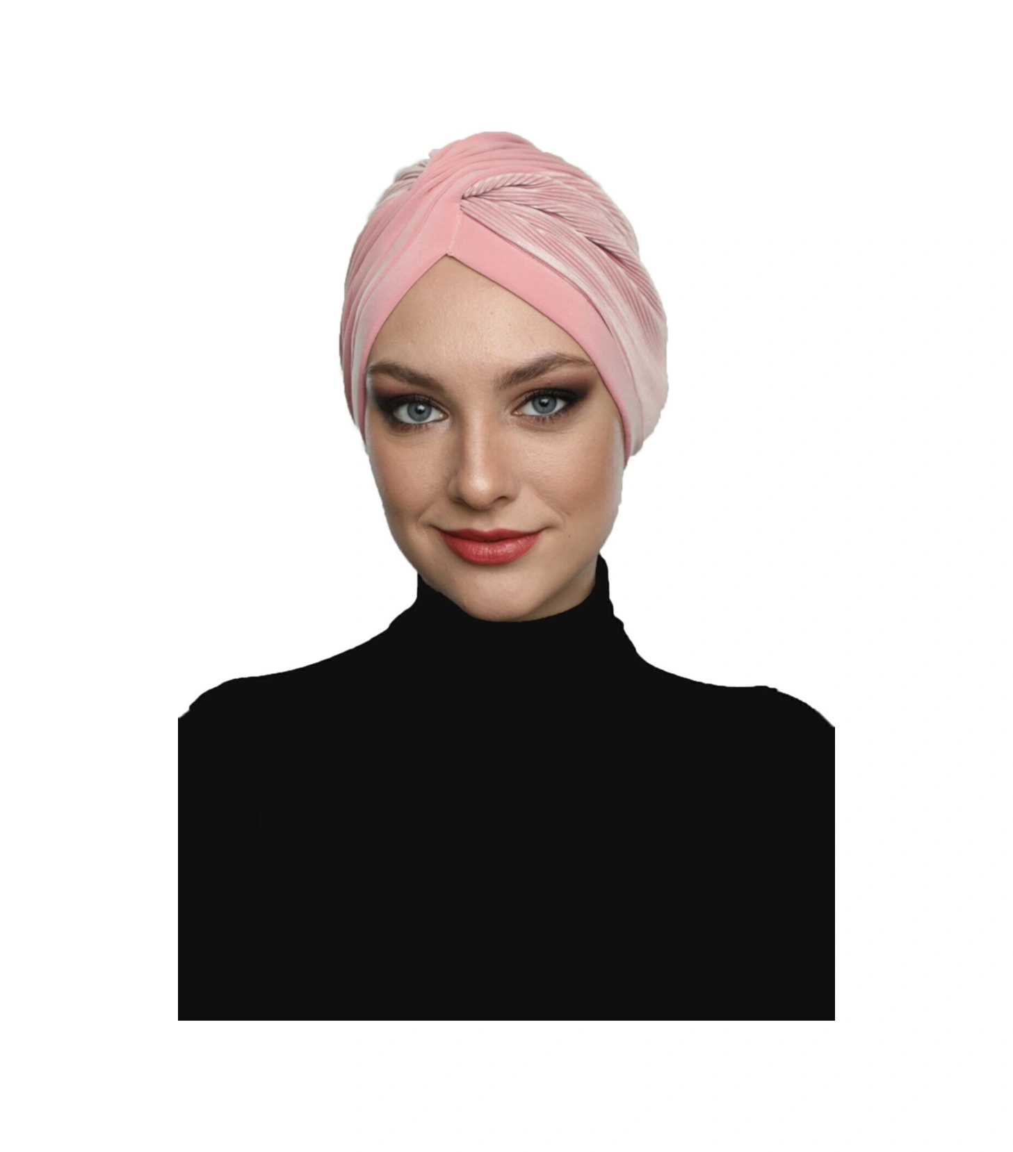 Çapraz Plise Astarlı Hazır Türban Ve Tesettür Bonesi Pudra