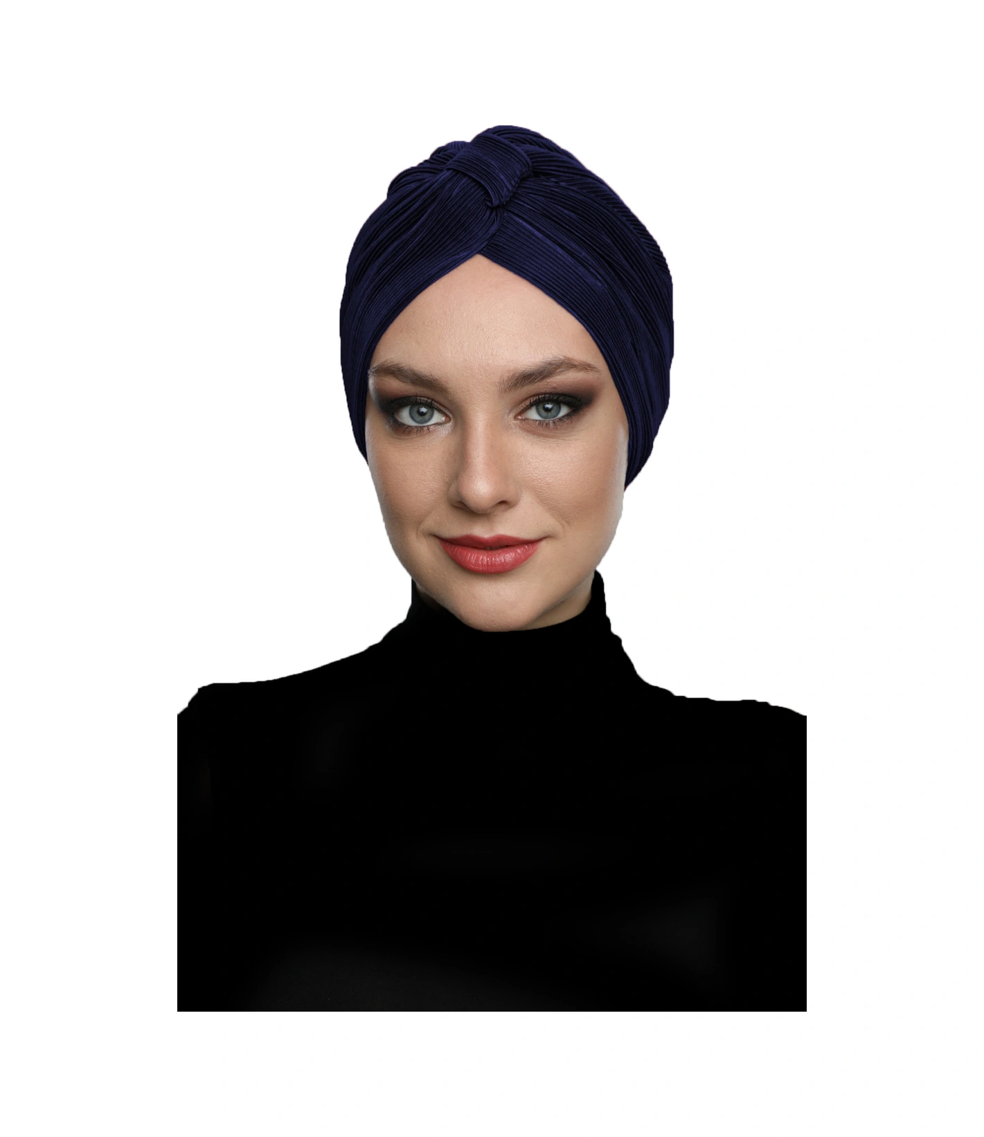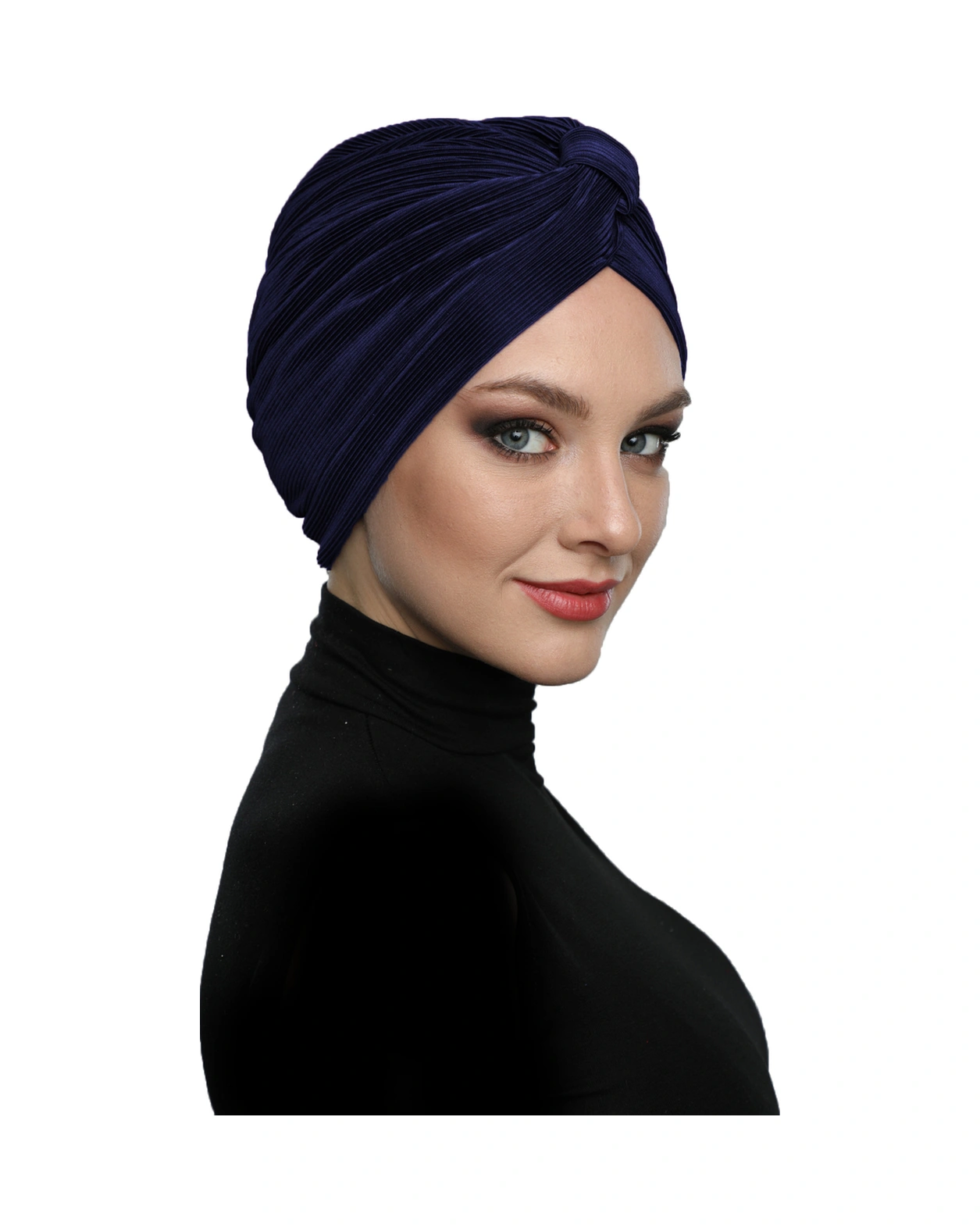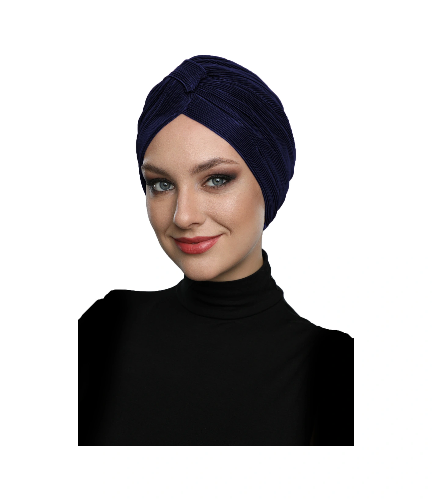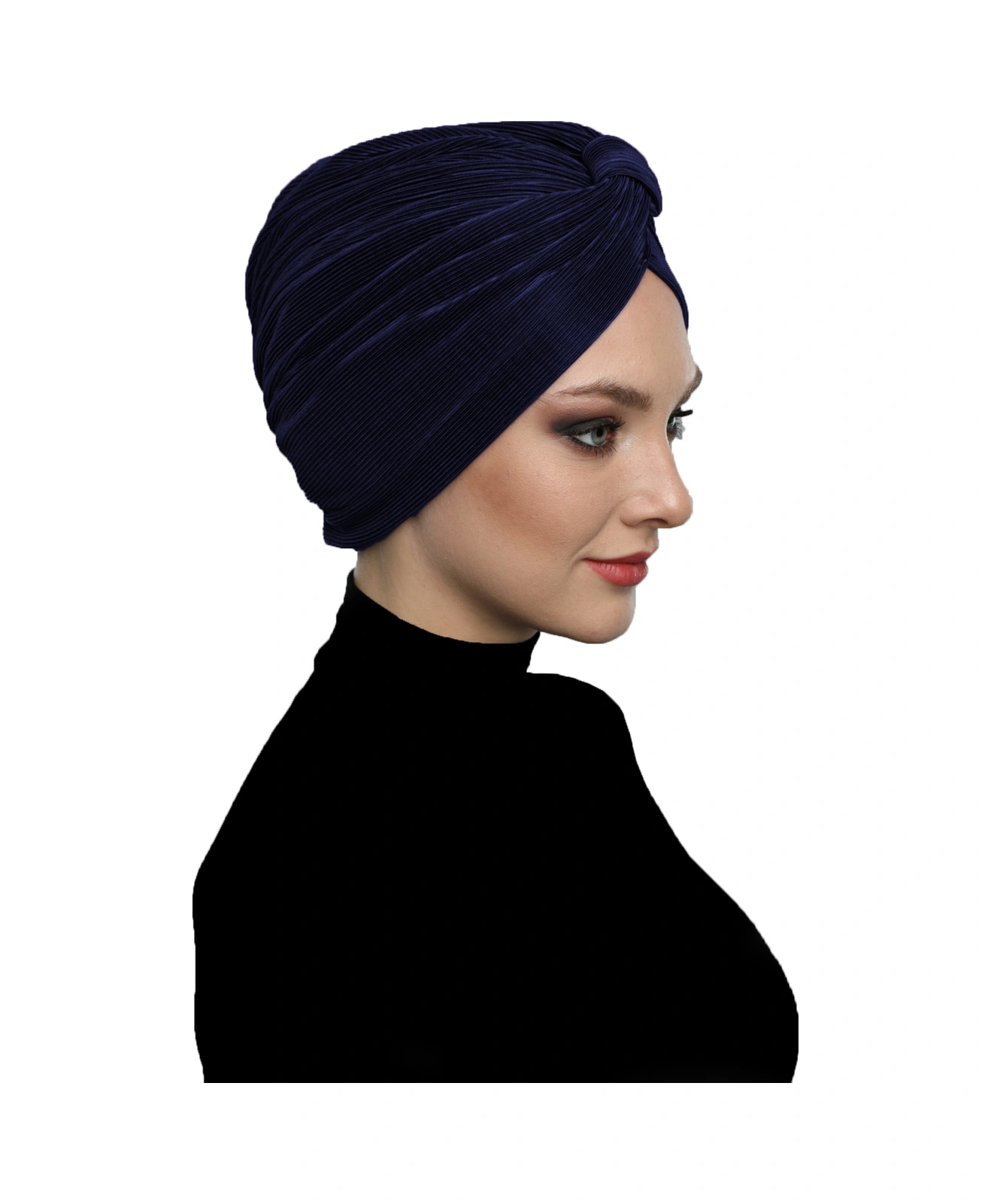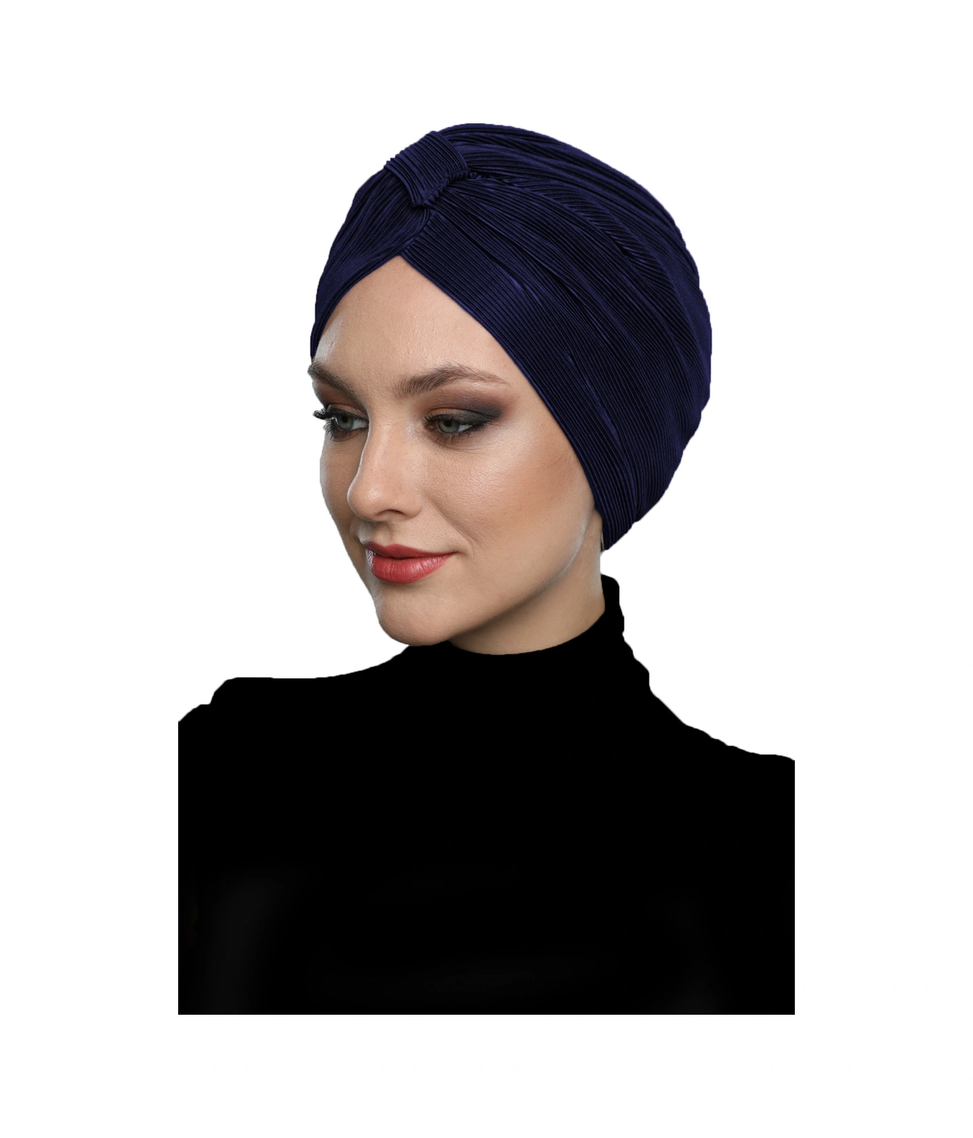 Çapraz Plise Bantlı Astarlı Lacivert Hazır Türban Tesettür Havuz Bonesi Lacivert