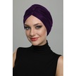 Çapraz Plise Bantlı Astarlı Mor Hazır Türban Tesettür Havuz Bonesi Mor