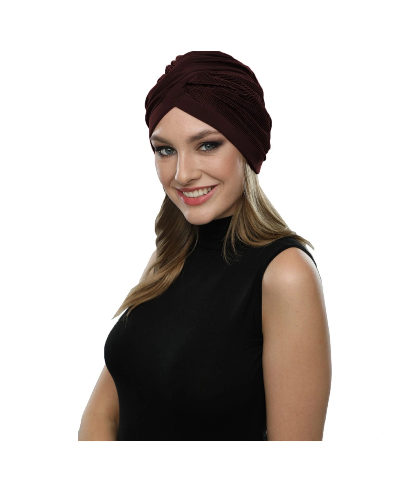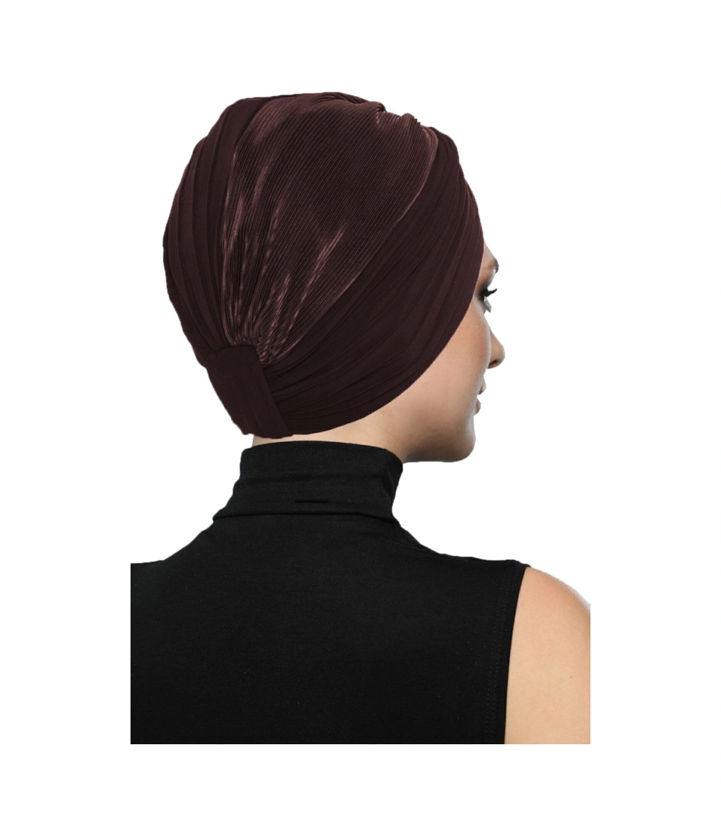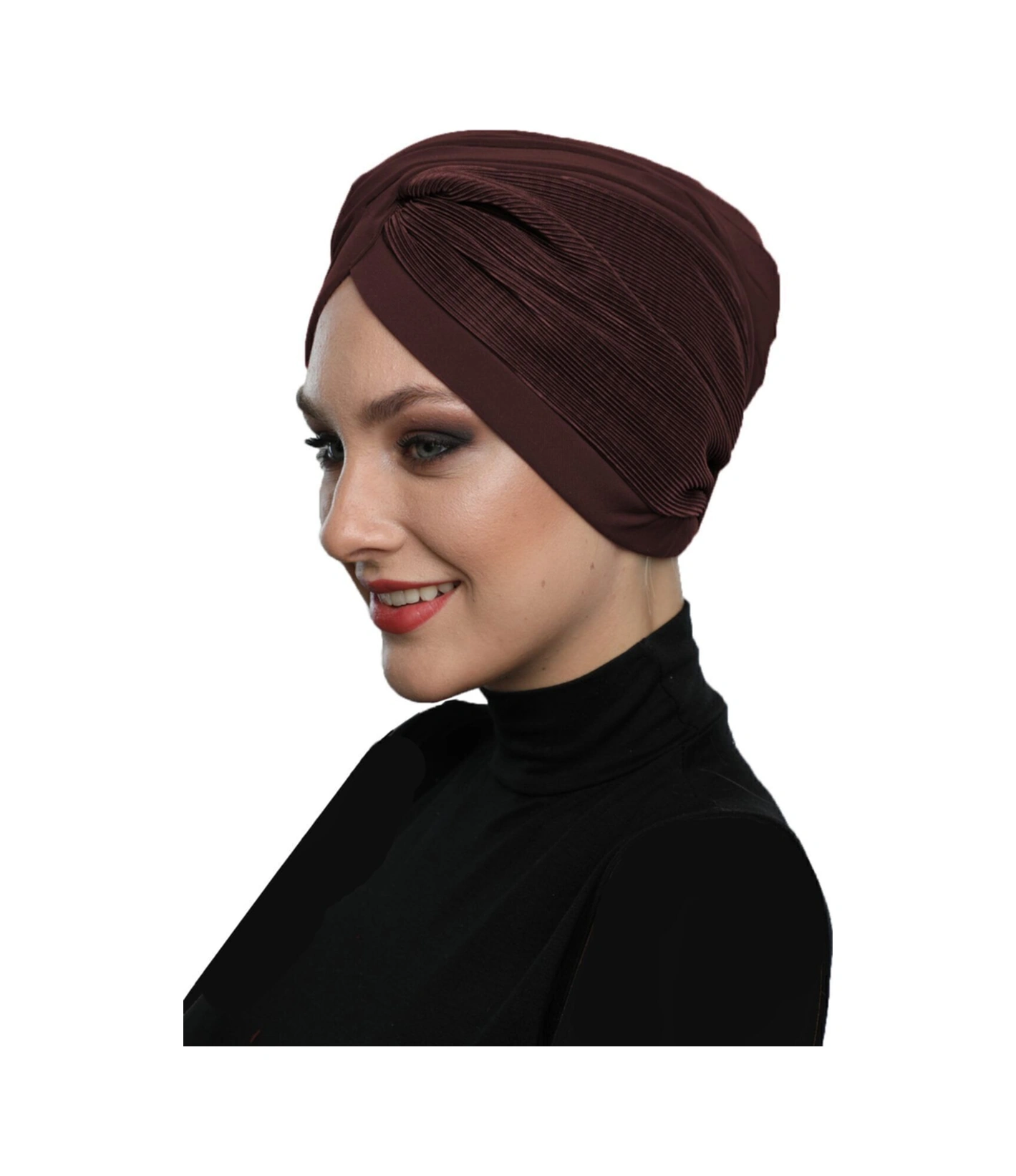 Çapraz Plise Kahve Hazır Türban Tesettür Havuz Bonesi Kahve