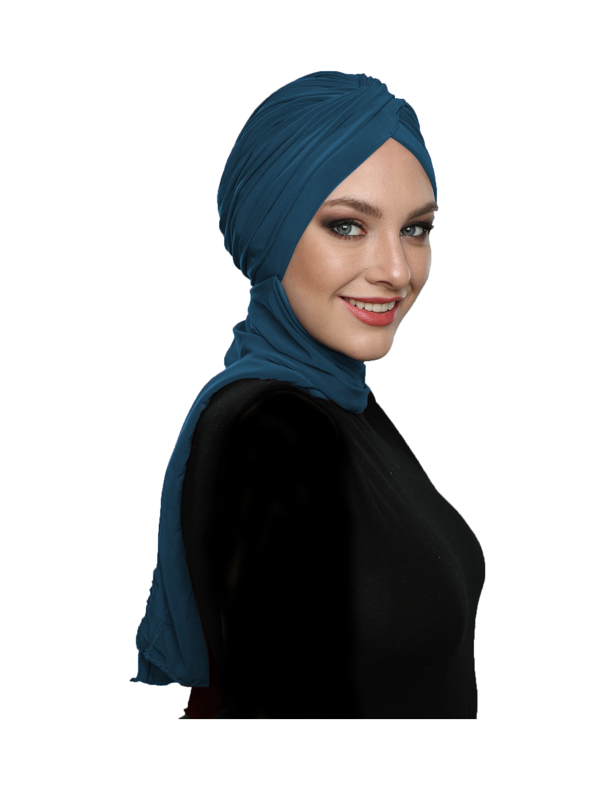 Çapraz W Atkılı Petrol Hazır Türban Tesettür Bone Petrol