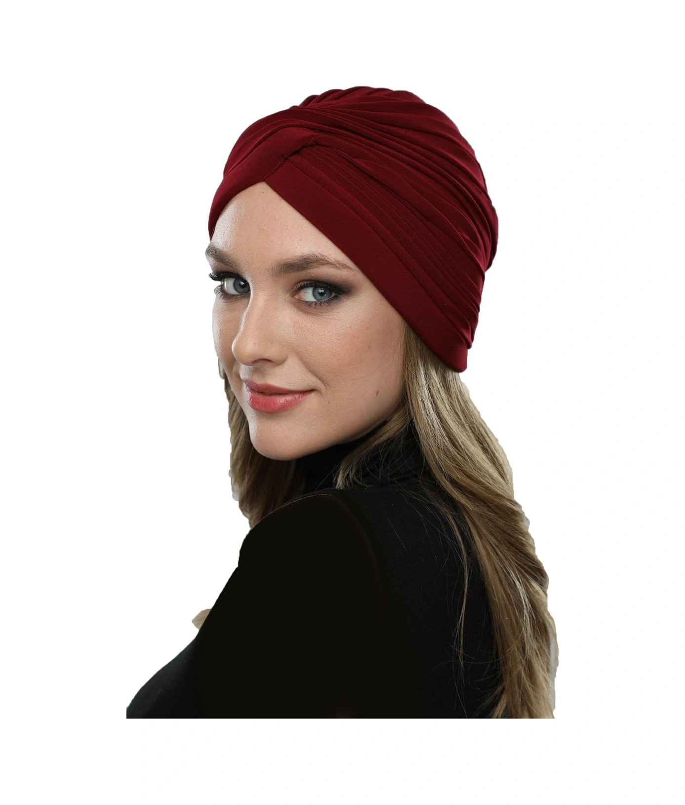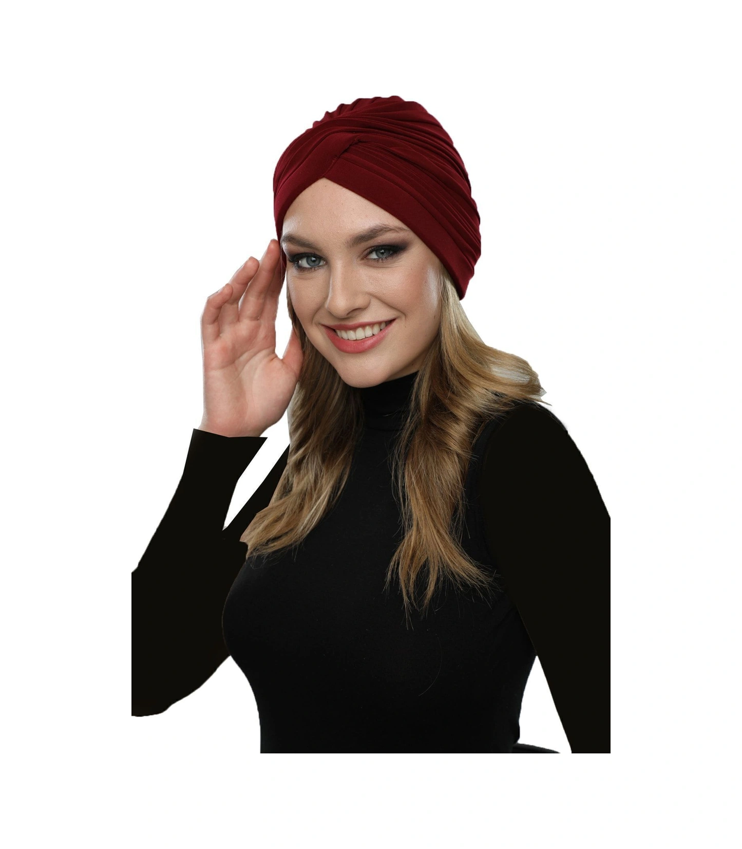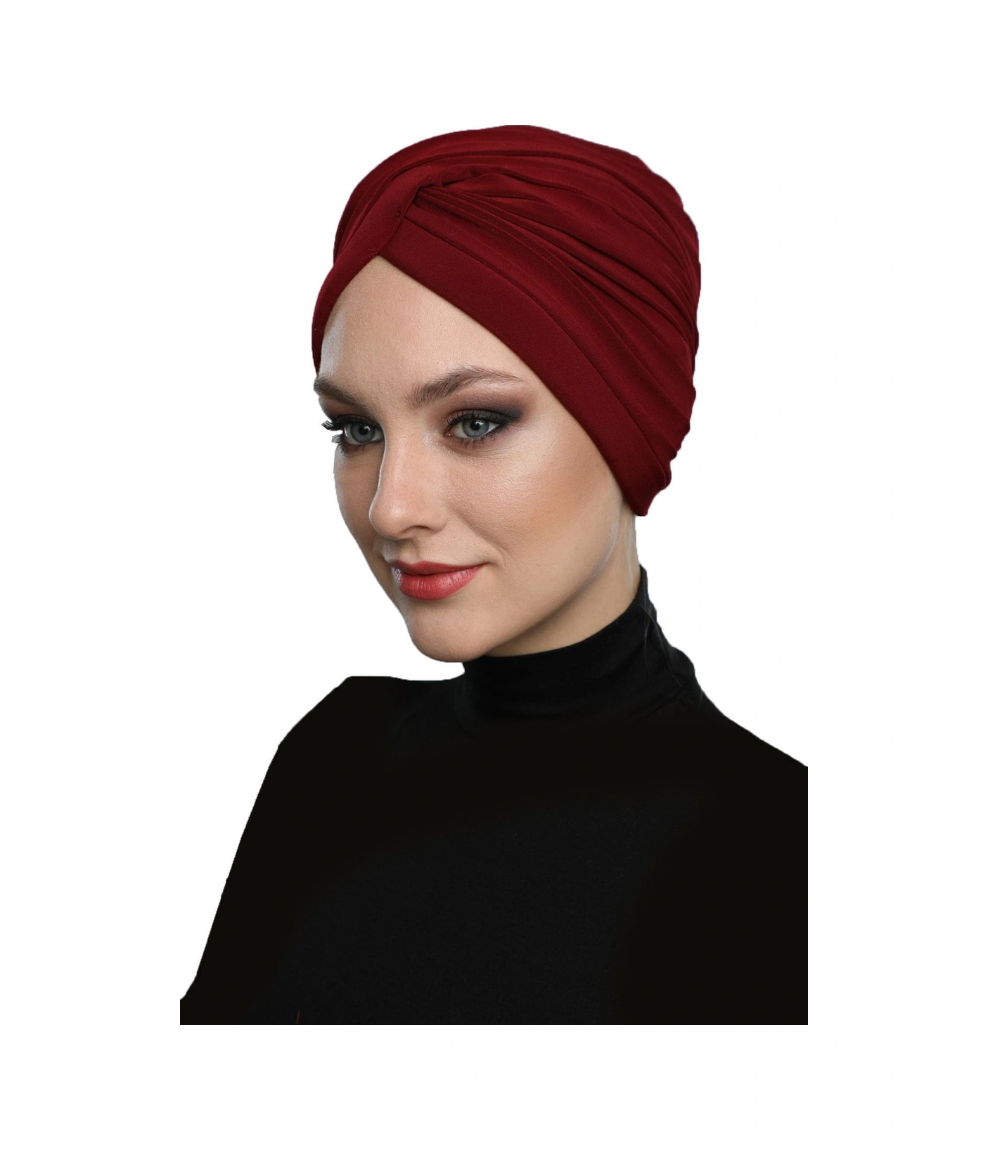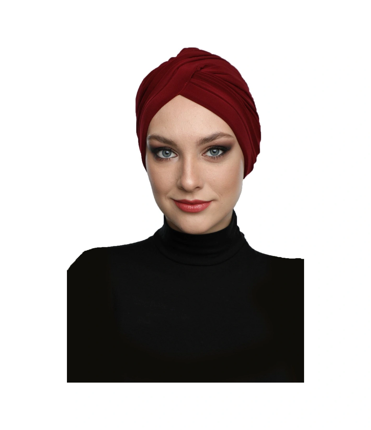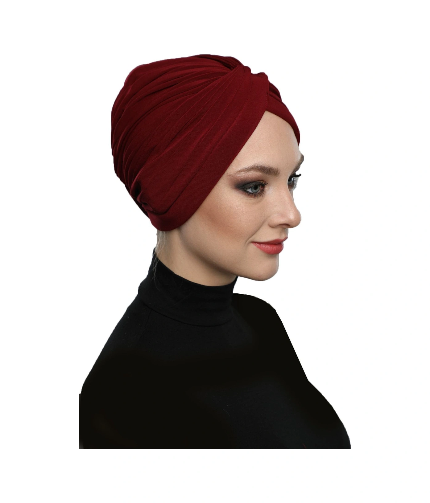 Çapraz W Nervürlü Ensesi Bantlı Bordo Hazır Türban Tesettür Havuz Bonesi Bordo