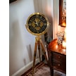 Çarklı Gold Metal 3d Ahşap Ayaklı Seyyar Ofis Salon Otel Saati Altın