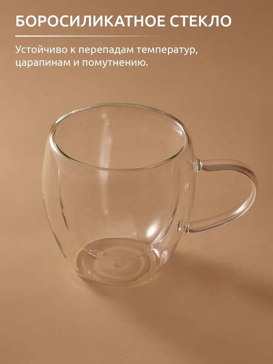 3b Trend Borosilikat Çift Cidarlı Cam Kupa Bardak 250 Ml Şeffaf
