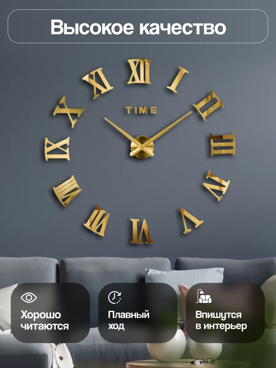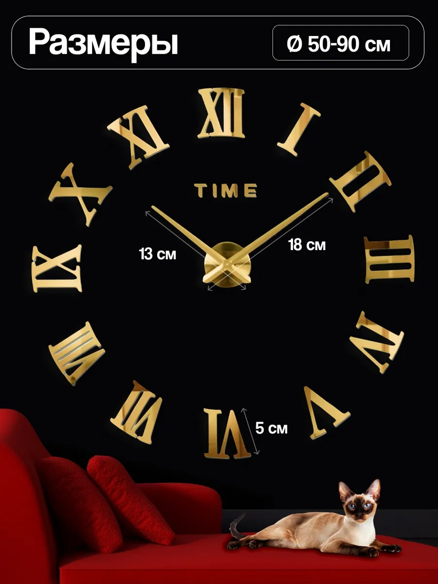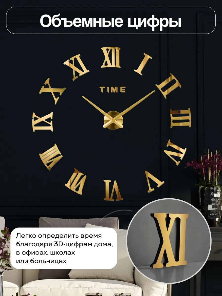 Casy Market 3d Dijital Rakamlı Dekoratif Büyük Duvar Saati 320451078 Altın Rengi