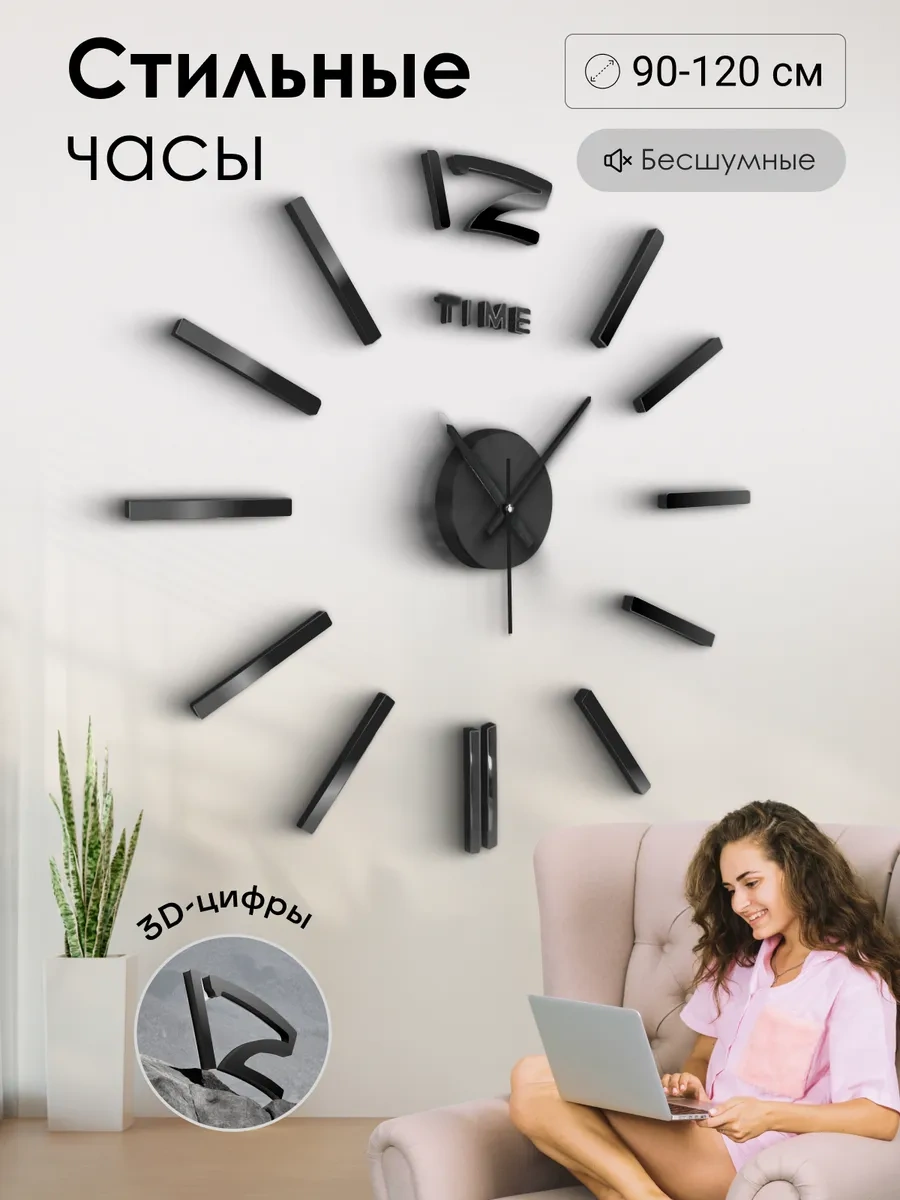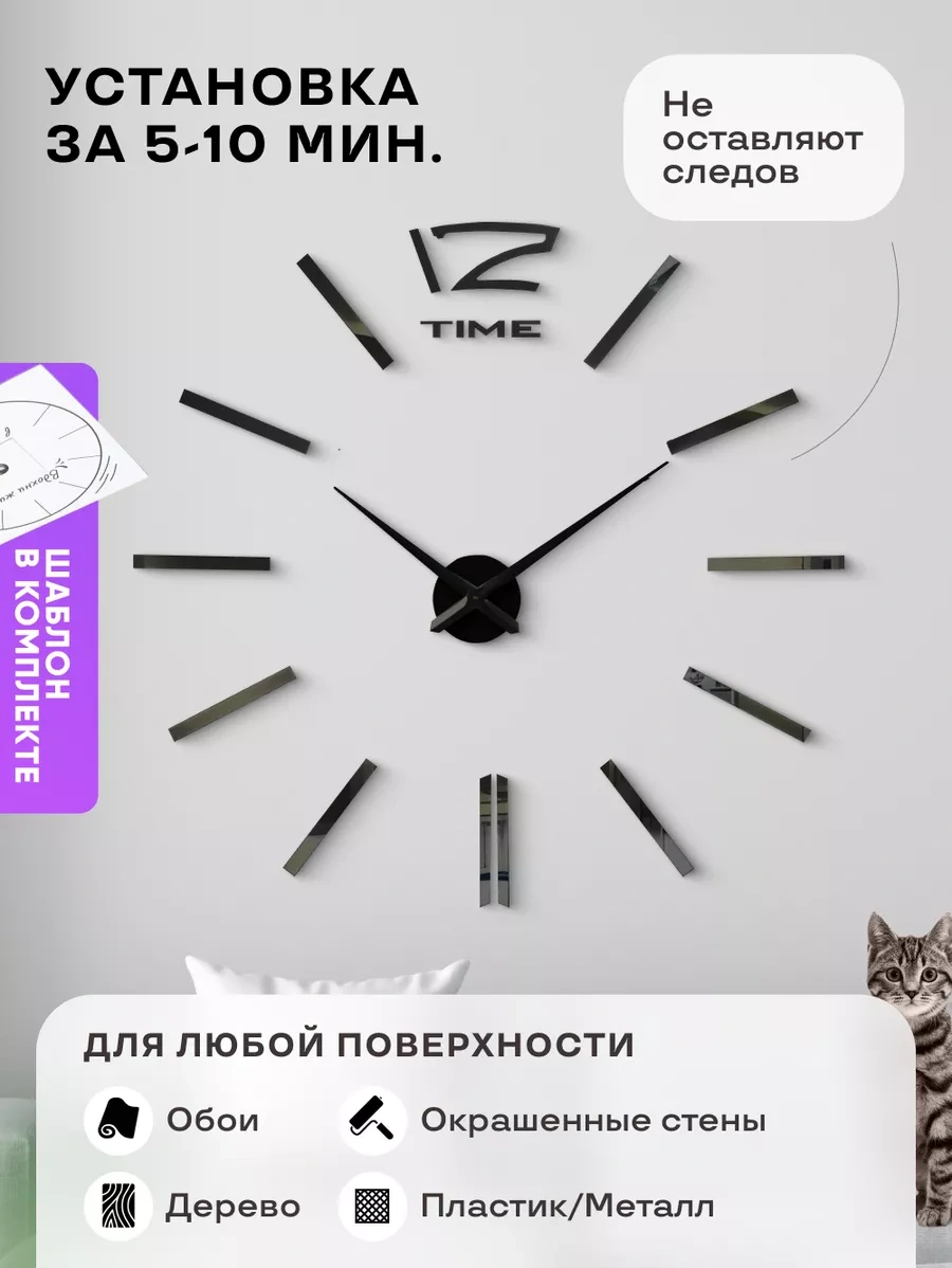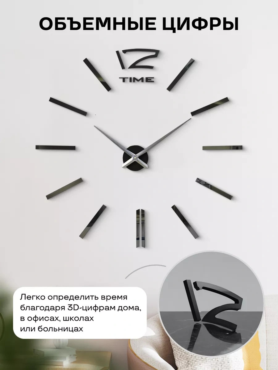 Casy Market Duvar Saati, Ev Dekorasyonu İçin Kendinden Yapışkanlı 3d Dekor 156216372 Siyah