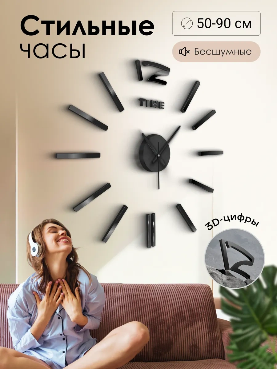 Casy Market Duvar Saati, Ev Dekorasyonu İçin Kendinden Yapışkanlı 3d Dekor 236493269 Siyah
