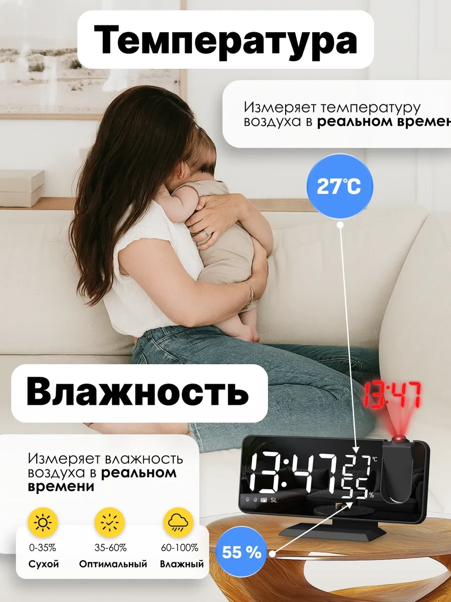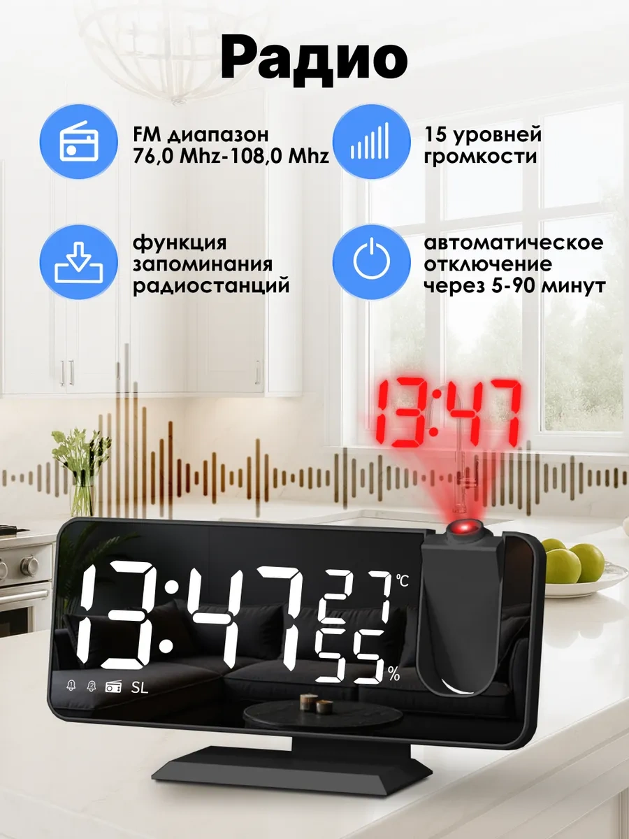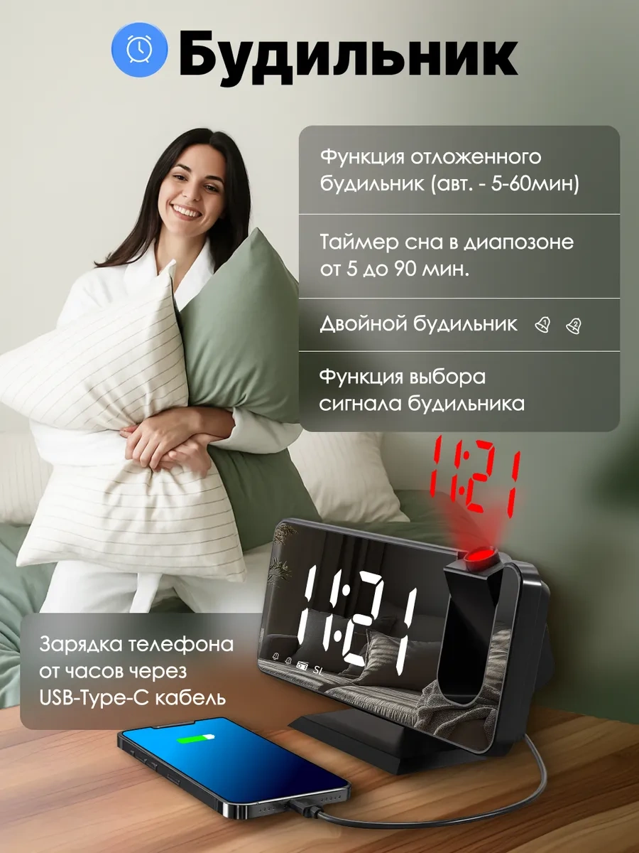 Casy Market Elektrikli Masaüstü Çalar Saat, Tavan Projeksiyon Özelliği 410035200 Siyah