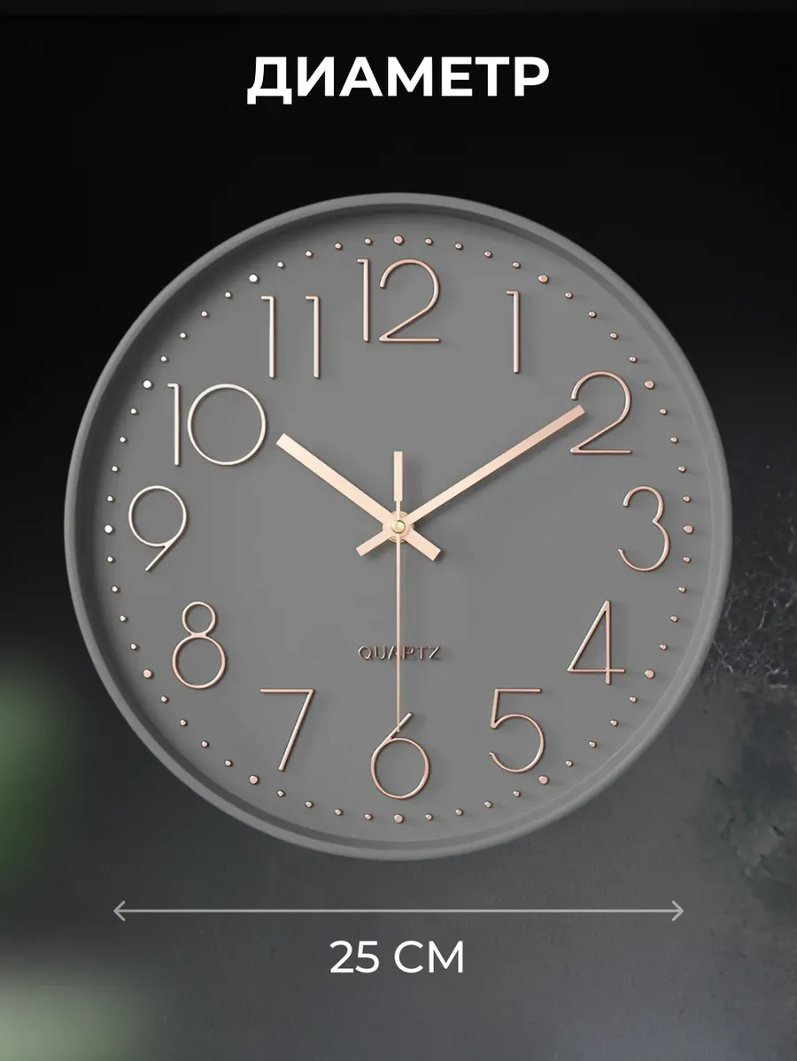 Casy Market Mutfak İçin Yuvarlak Sessiz Duvar Saati 25 Cm 373668683 Altın Rengi