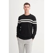 Deepsea Erkek Siyah Çizgi Desenli Slim Kesim Tam Balıkçı Yaka Triko Boğazlı Kazak 2505509 Siyah