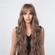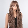 Cbtx Kadın Uzun Saç Peruk Kaküllü Degrade Kabarık Su Dalgalı Kıvırcık Saç Peruk, Renk: Koyu Kahverengi Lc1061-1