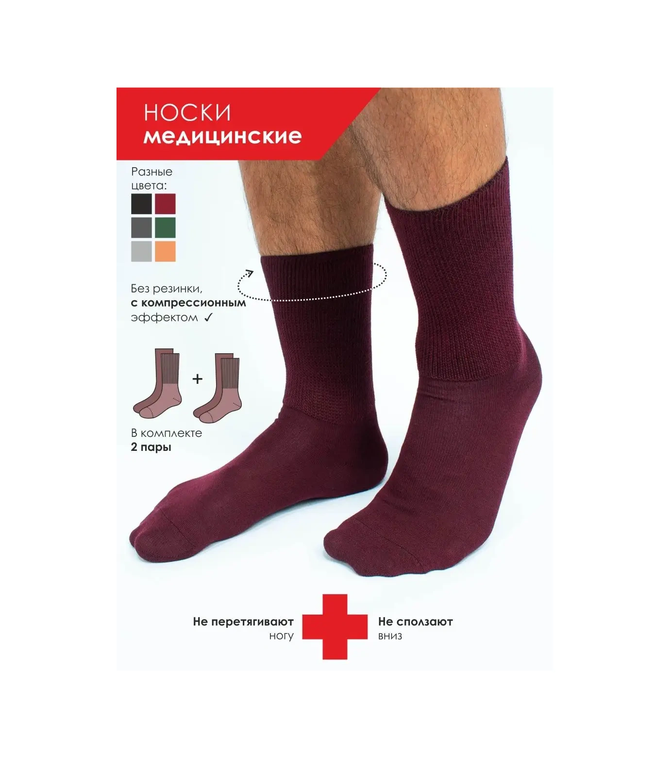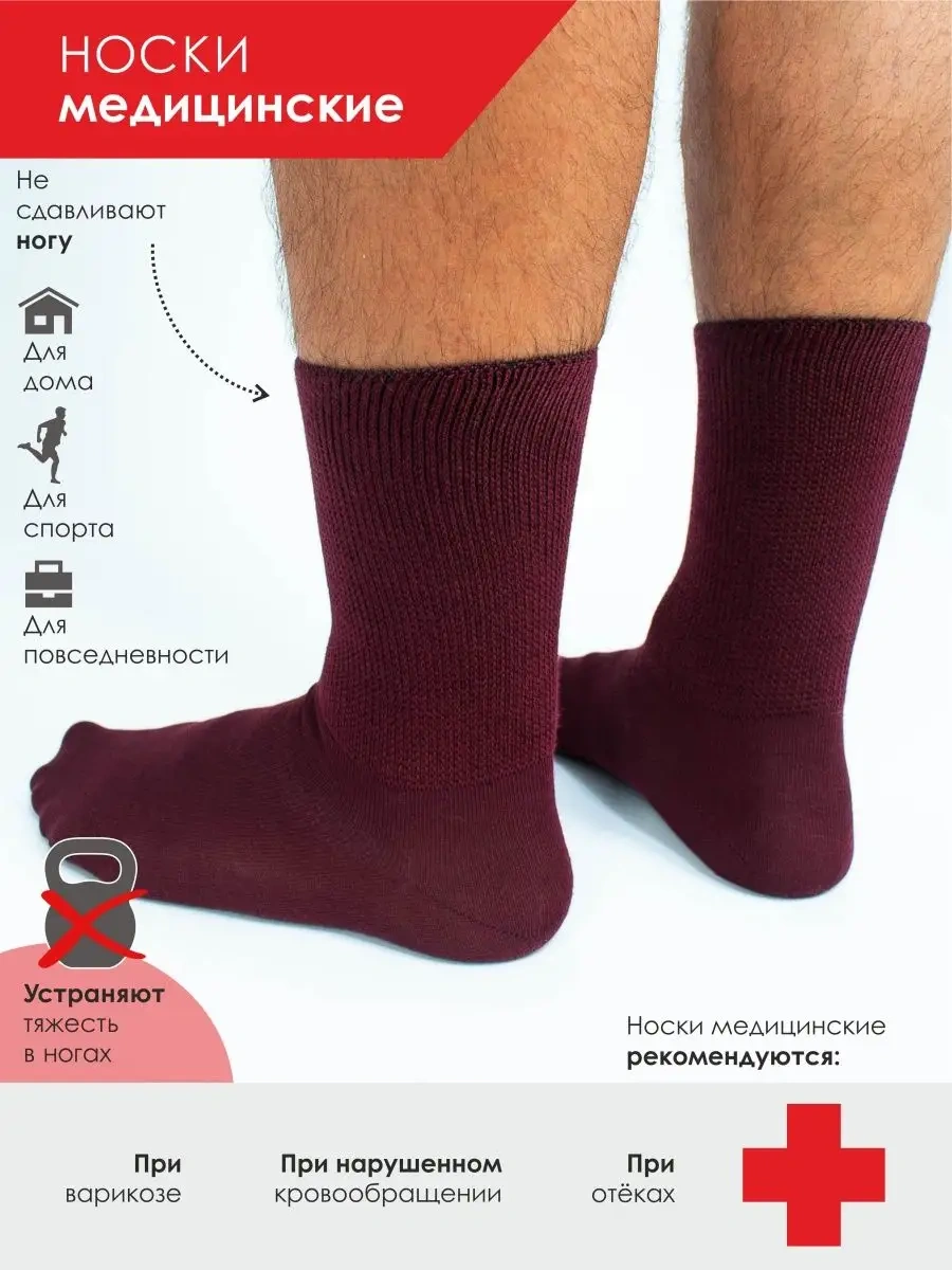 Ceboksarskıj Trıkotaz Tıbbi Çoraplar, Lastiksiz, 2 Çift 114763043 Bordo
