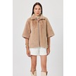 Kapüşonlu Düğmeli Peluş Mont - Kadın Beyaz