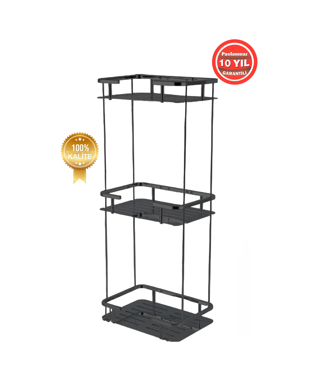 Çelik Banyo Paslanmaz Pirinç Mat Siyah Lidya 3'lü 15x22 Cm Şampuanlık Banyo Rafı Siyah