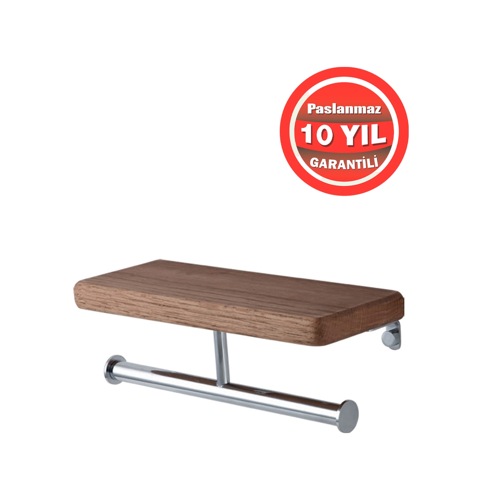Çelik Banyo Paslanmaz Pirinç Mdf 2'li Tuvalet Kağıtlık Ahşap