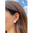 Çelik Beyaz Dalgalı Altın Çerçeveli Kadın Küpe Sevgiliye Hediye Gold