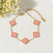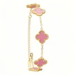 Çelik Bileklik Dört Yapraklı Küçük Yonca Pembe Sedef Taşlı Uzunluk 18 Cm Gold Altın - Gold