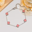 Çelik Bileklik Dört Yapraklı Küçük Yonca Pembe Sedef Taşlı Uzunluk 18 Cm Gümüş Gümüş