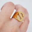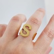 Çelik Gold Düz Kesim Harf Yüzük -s Harfi- Ayarlı Ölçü-1906