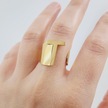 Çelik Gold Düz Kesim Harf Yüzük -t Harfi- Ayarlı Ölçü-1899 Altın