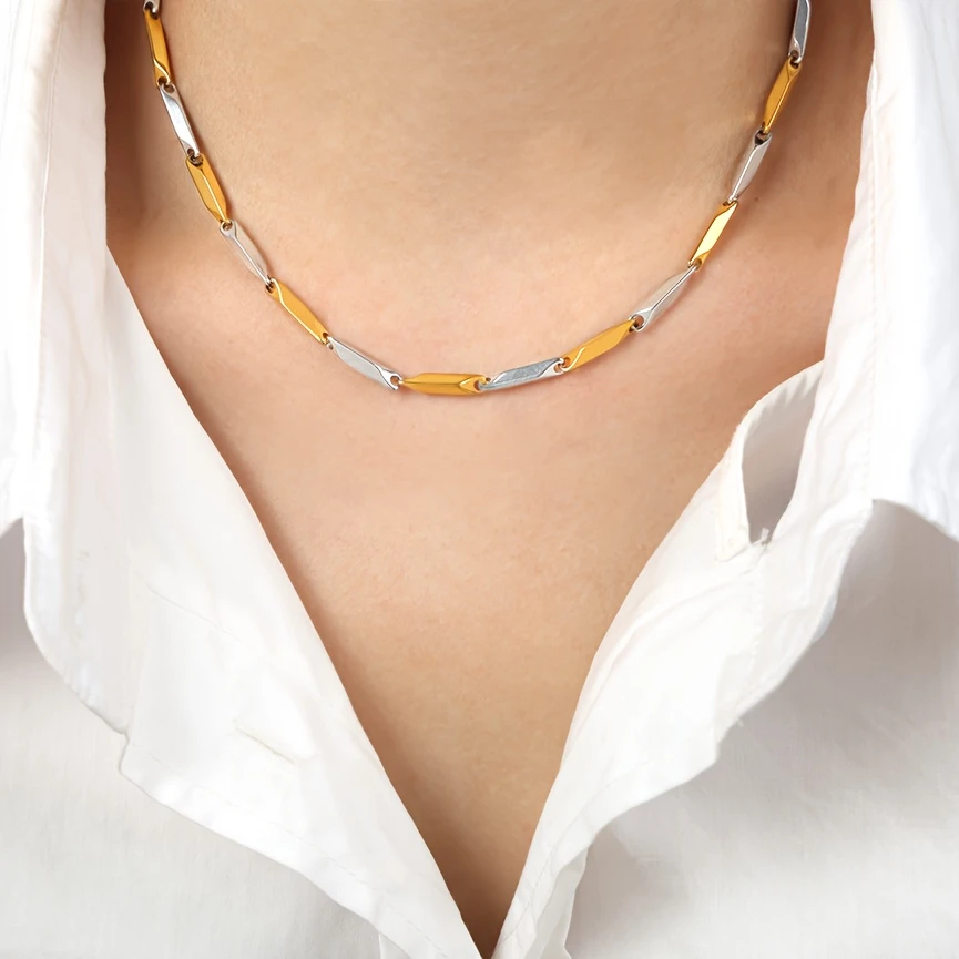 Çelik Kolye Titanyum Melon Düz Model 2 Mm 55 Cm Gümüş Altın Sarısı Altın - Gümüş