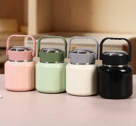 Çelik Mama Termosu Sıcak Veya Soğuk Yiyecekler İçin Öğle Yemeği Termosu 500 Ml Siyah