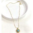 Çelik Mavi Taşlı Yuvarlak Kolye 40+5 Cm Beyaz