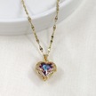 Çelik Mor Taşlı Kalp Kolye 1,5 Cm Beyaz