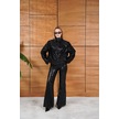 Cemo Full Pul Payetli Siyah Fermuarlı Bomber Ceket Siyah