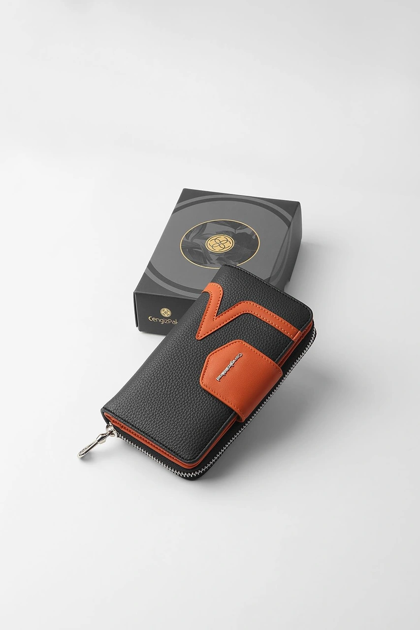 Cengiz Pakel Orta Boy Kadın Cüzdan 65295m - Siyah/kiremit 65295m-siyah-kiremit