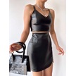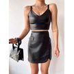 Cep Detaylı Oval Kapaklı Deri Etek Siyah H240048 Siyah