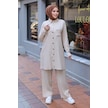 Aksesuar Detaylı Uzun Ceket Pantolon Takım Ekru-ekru Ekru