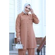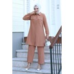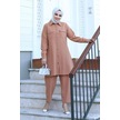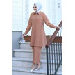 Tesettür İkili Takım Uzun Tunik Bol Paça Pantolon 4006-bej Bej