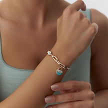 Fiyonk Kuyumculuk 14 Ayar Altın Tek Sıra Zincirli Dorika Top Detaylı Bileklik Sarı Altın