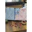 Çeyizlik Aile Bornoz Seti 4 Parça Pudra Mavi Çok Renkli