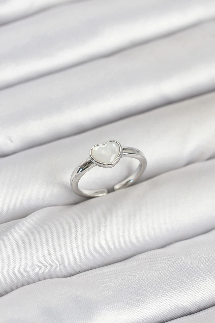 Ceylan Adam Pirinç Gümüş Renk Kalpli Kadın Yüzük Çok Renkli