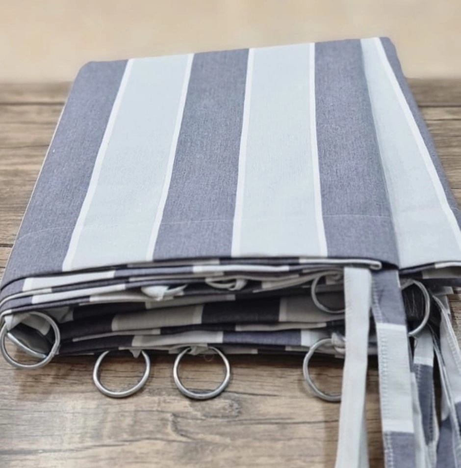 Ceylan Home Balkon Perdesi Bağcıklı Halkalı Ölçü Seçenekli Gri Çizgili Gri