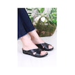 Ceyo 9946-1 Siyah Rahat Topuk Dikeni Destekli Çapraz Bantlı Kadın Terlik Siyah